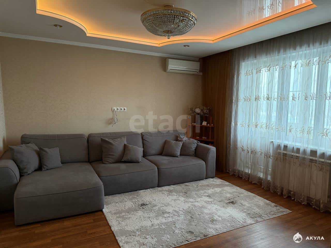 ⁃ Подсветка натяжного потолка в гостиной