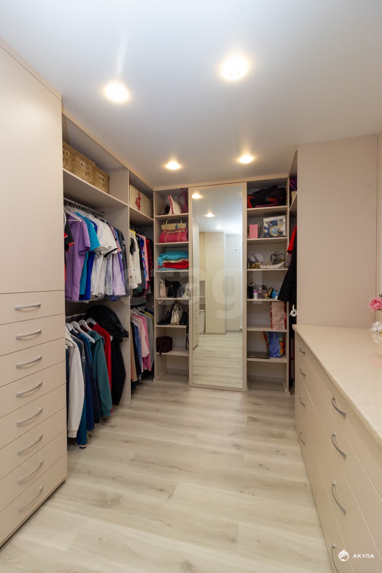 Две гардеробные комнаты и встроенные шкафы, а кухня оснащена современной встроенной техникой. Состояние квартиры позволяет заселиться сразу после покупки.
