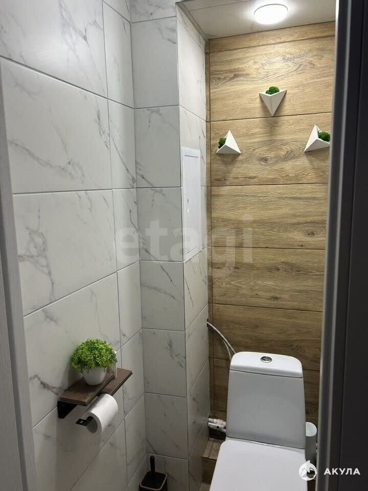 В санузле совсем свежий ремонт, всё в кафеле и плитке.