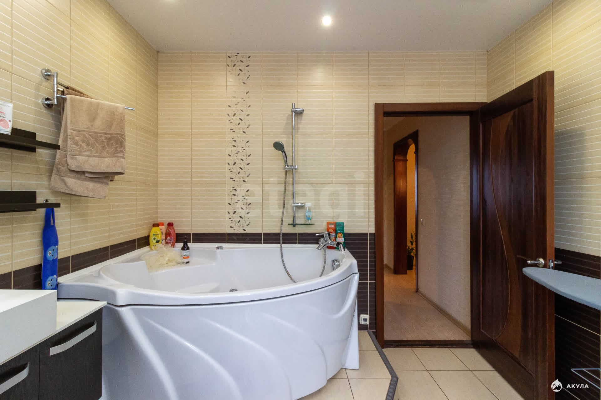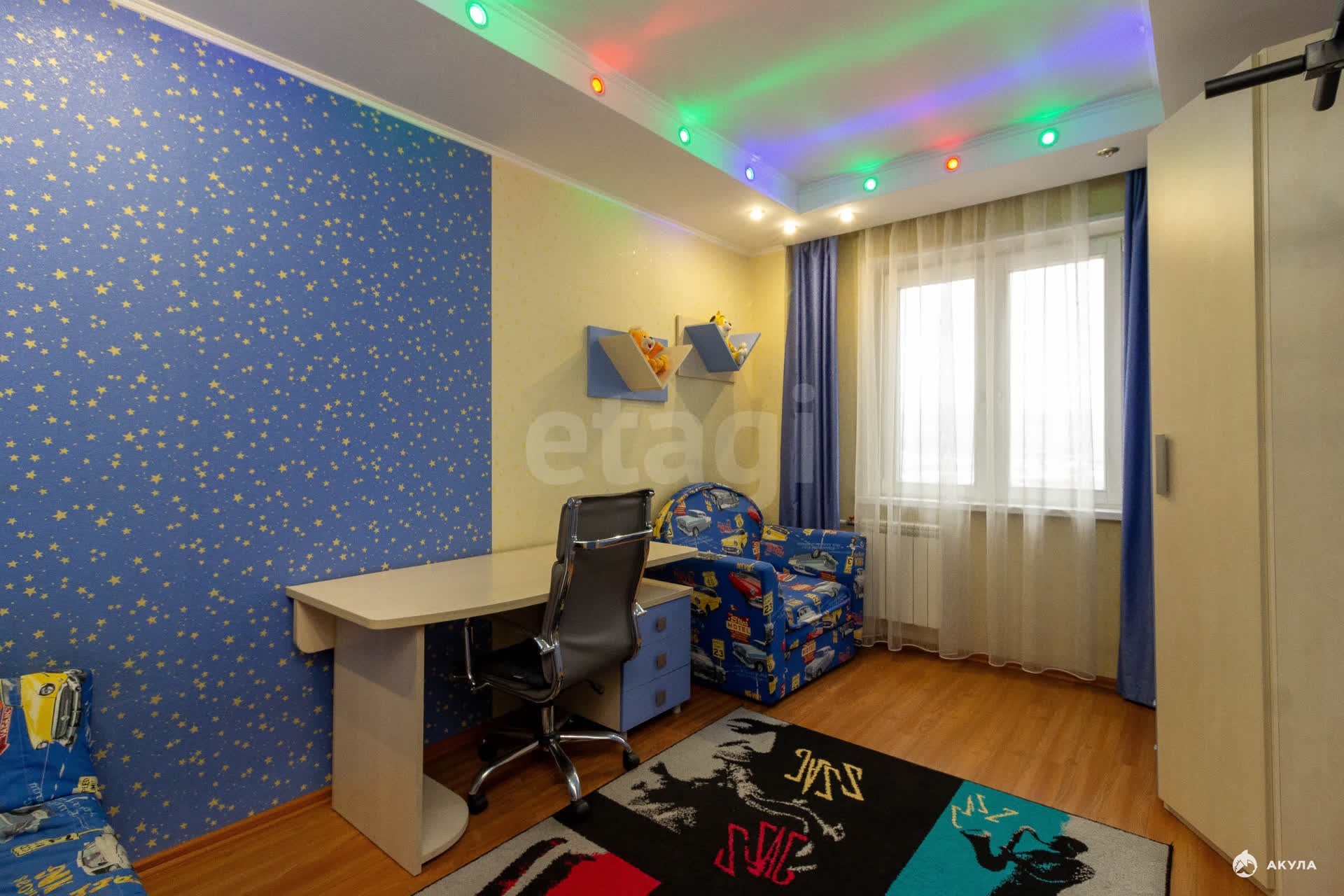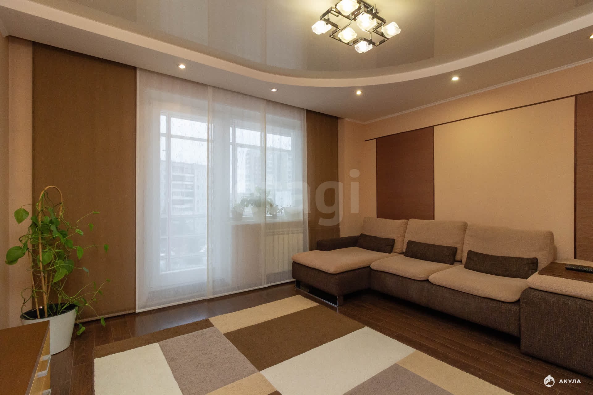 Продается просторная четырехкомнатная квартира с качественным современным ремонтом и панорамным видом из окон. Объект находится в отличном состоянии, у него единственный собственник. Площадь кухни составляет 20 кв. м., она оборудована функциональным гарнитуром со встроенной техникой, которая остается новому владельцу. Ванная комната площадью 9 кв. м. выполнена по дизайнерскому проекту. Лоджия благоустроена под комфортную зону отдыха. Вся существующая мебель и бытовая техника, включая холодильник, плиту и микроволновую печь, передаются покупателю, что позволяет заселиться без дополнительных затрат и хлопот. Недвижимость расположена в новом доме с чистыми подъездами и охраняемой огороженной территорией. Во дворе обустроены детские игровые и спортивные площадки, а также организована парковка; зимой здесь заливают каток. Инфраструктура района развита: в шаговой доступности находятся детские сады, школы, магазины, аптеки и общественный транспорт. Поездка до центра города занимает около пяти минут. Это предложение сочетает выгодное расположение, готовность к проживанию и комплекс преимуществ для комфортной жизни.Торг предусмотрен!