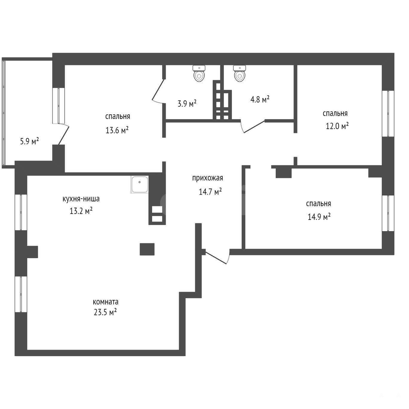 - 58 м²