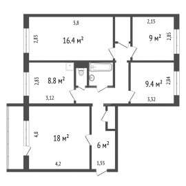 Продается просторная 4х комнатная квартира для большой семьи с продуманной планировкой и отличным расположением комнат. Ключевые особенности: Зонирование Три изолированные спальни (14, 0 + 14, 0 + 14, 2 кв.м.) выходят на солнечную сторону. Гостиная (17, 4 кв.м.) и кухня...