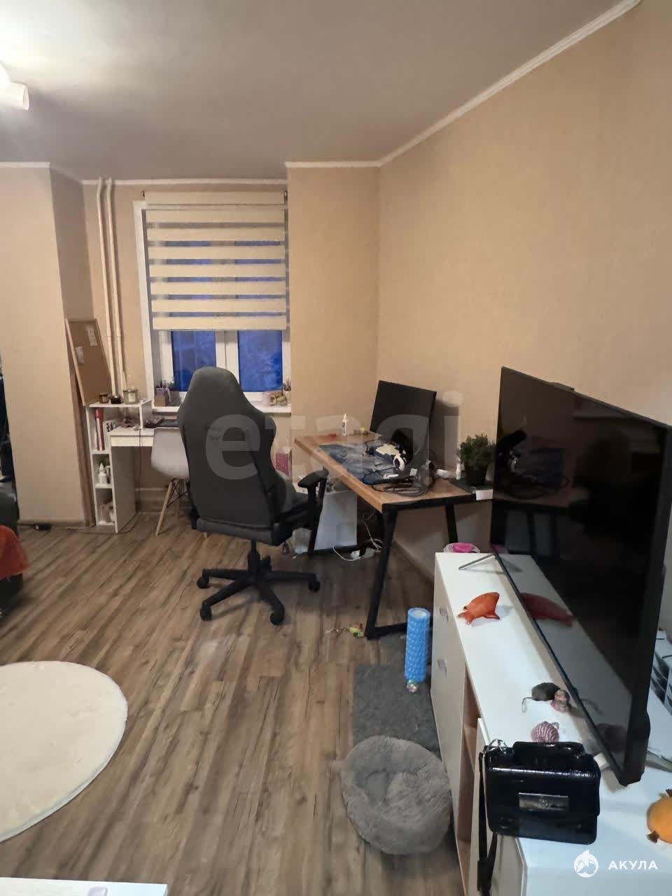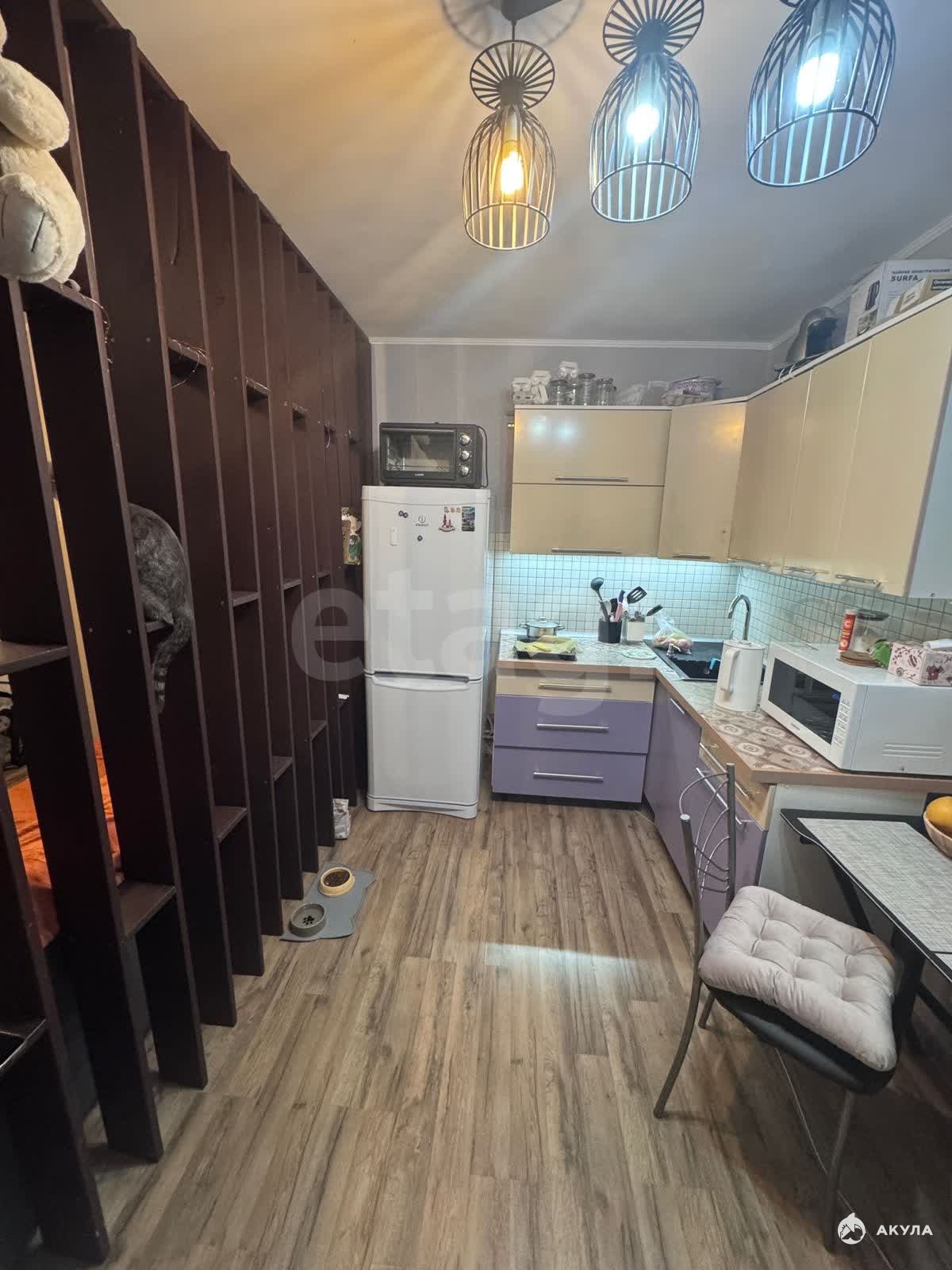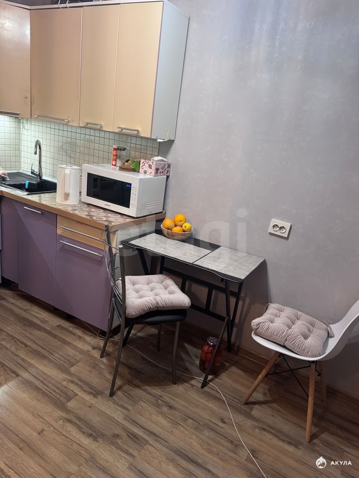 Помещение полностью обновлено: выполнен свежий косметический ремонт, уложен новый ламинат, поклеены современные обои. На окнах установлены новые ролл-шторы «день-ночь», которые остаются новому владельцу. Кухонный гарнитур угловой конфигурации, а также дизайнерская люстра передаются в собственность. По договоренности возможна передача кухонного стола и холодильника. В санузле остаются практичная тумба и зеркало.