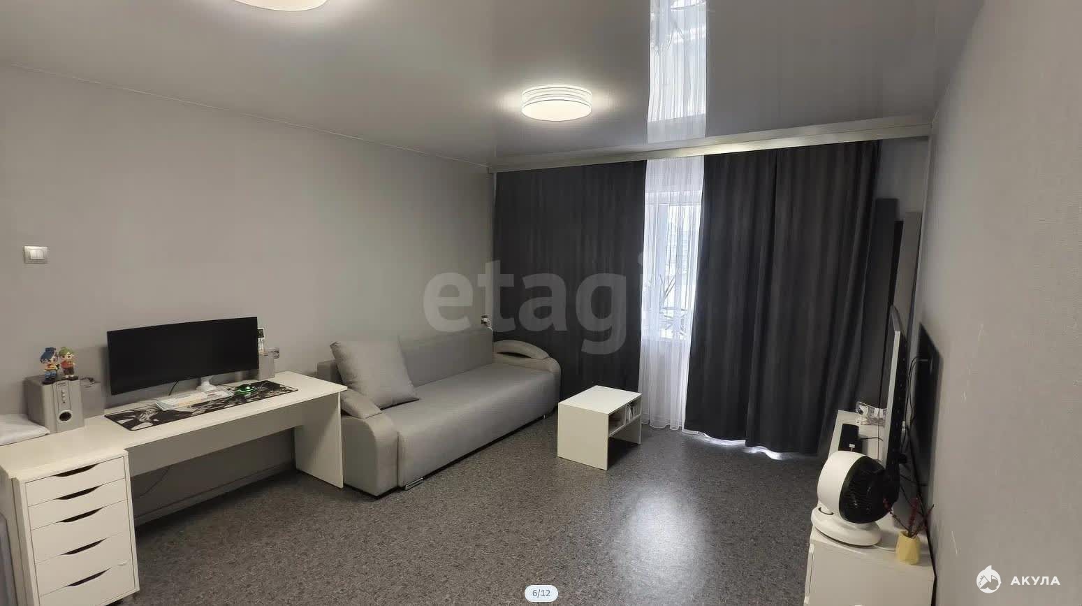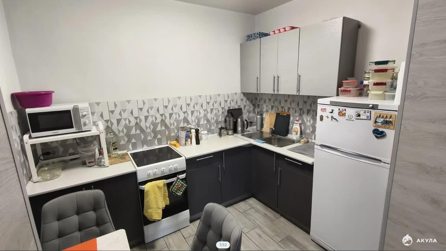 В квартире остается шкаф, кухонный гарнитур, диван.