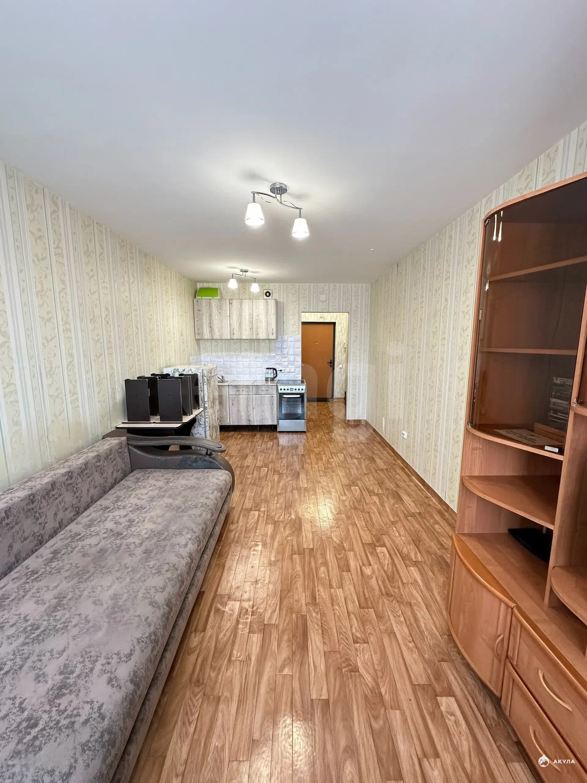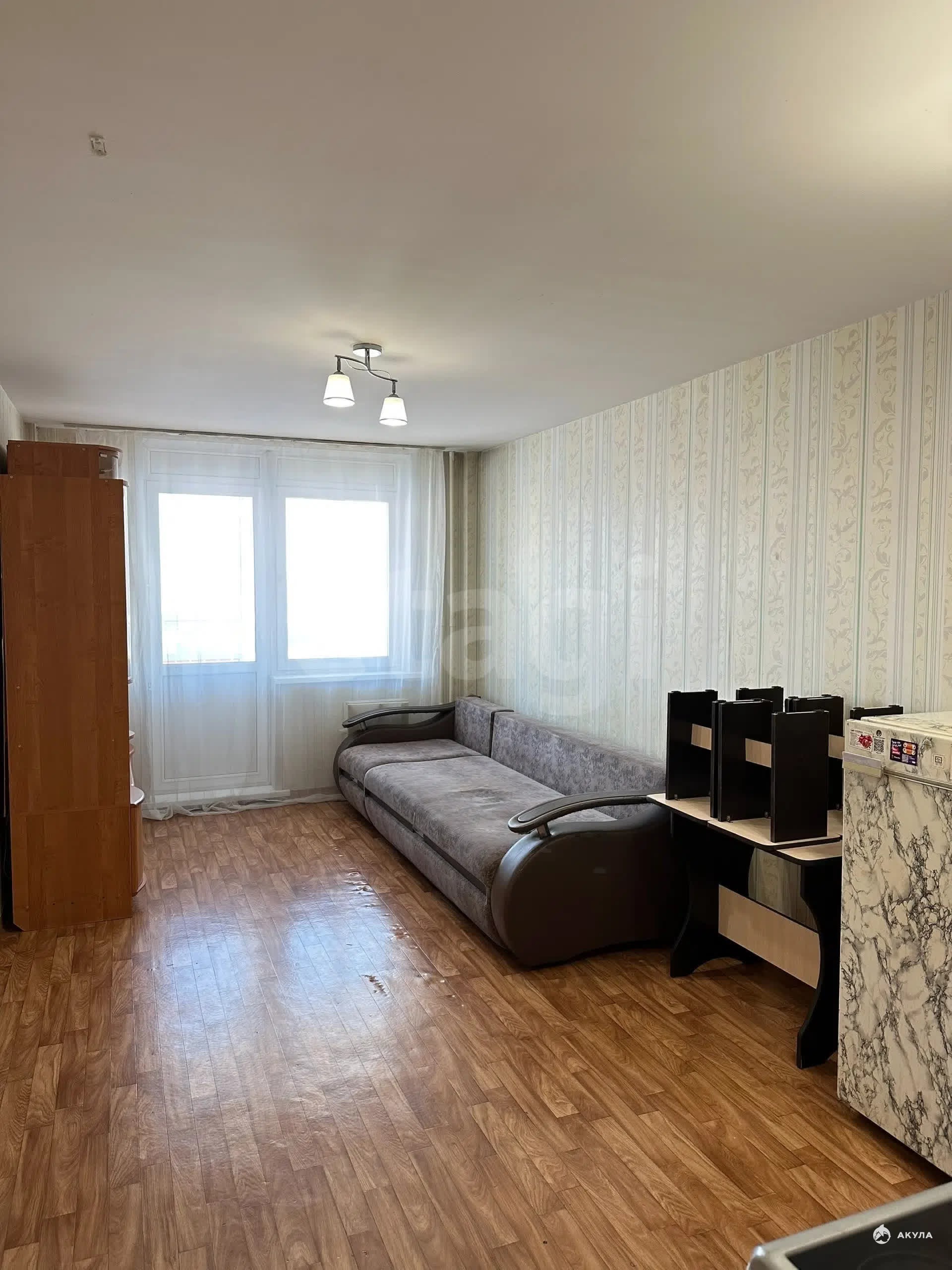 Продаётся светлая, просторная студия 25, 5 кв. м. Удобная почти квадратная форма позволяет легко зонировать кухонную и спальную части. Требуется косметический ремонт: переклеить обои и заменить линолеум, потолок в порядке, установлены пластиковые окна, балкон остеклён. Санузел совмещённый. Вся мебель и бытовая техника остаются.
