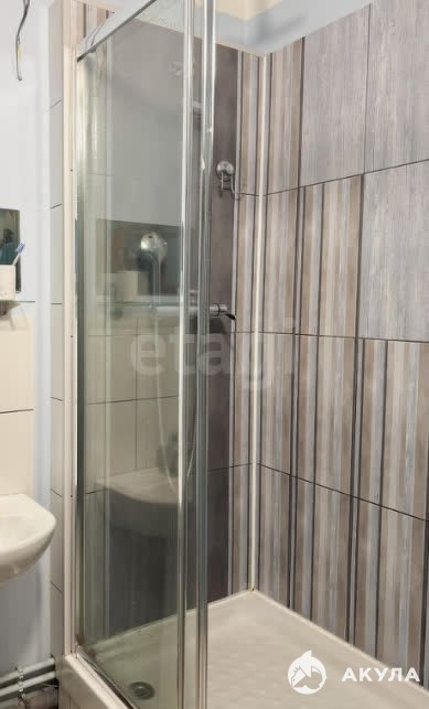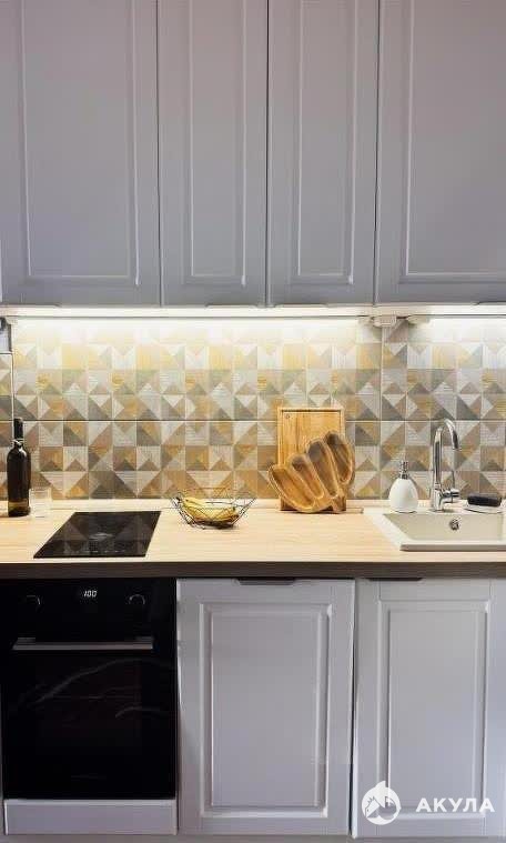 Остается кухонный гарнитур со встроенной духовкой и посудомойкой. В санузле установлена просторная душевая кабина вместо ванны.