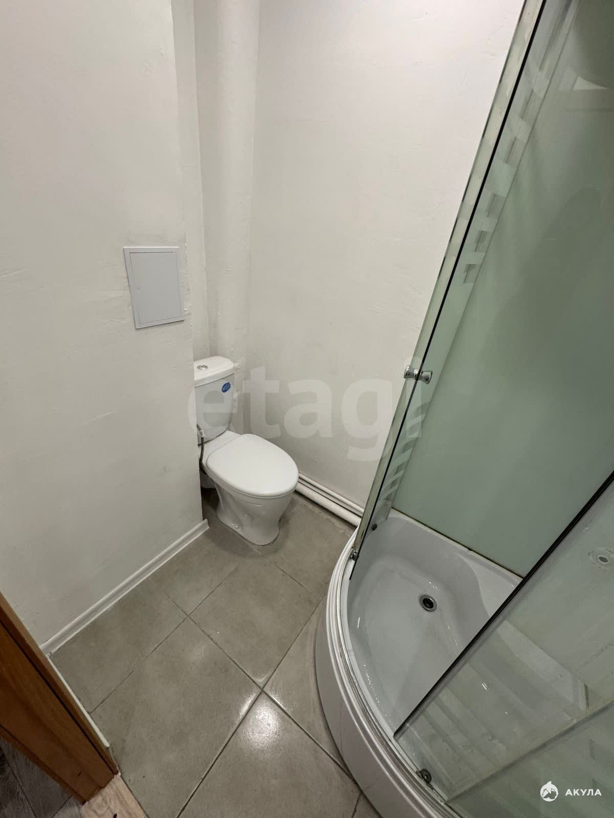 В студии выполнен хороший ремонт: натяжные потолки, обои, линолеум, а в санузле – душевая кабина и кафель.