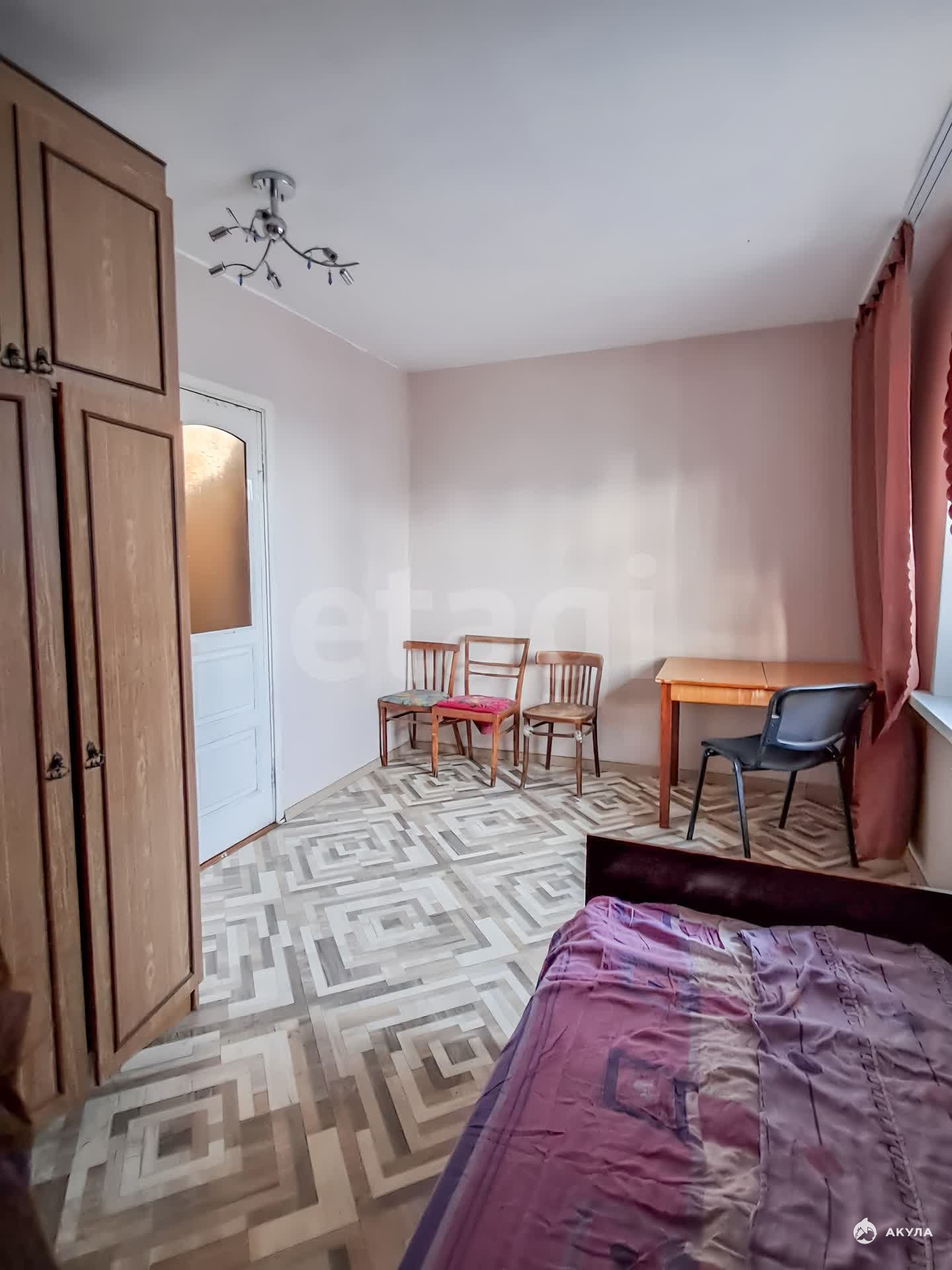 В комнате имеется: шкаф, кровать, стулья и письменный стол.