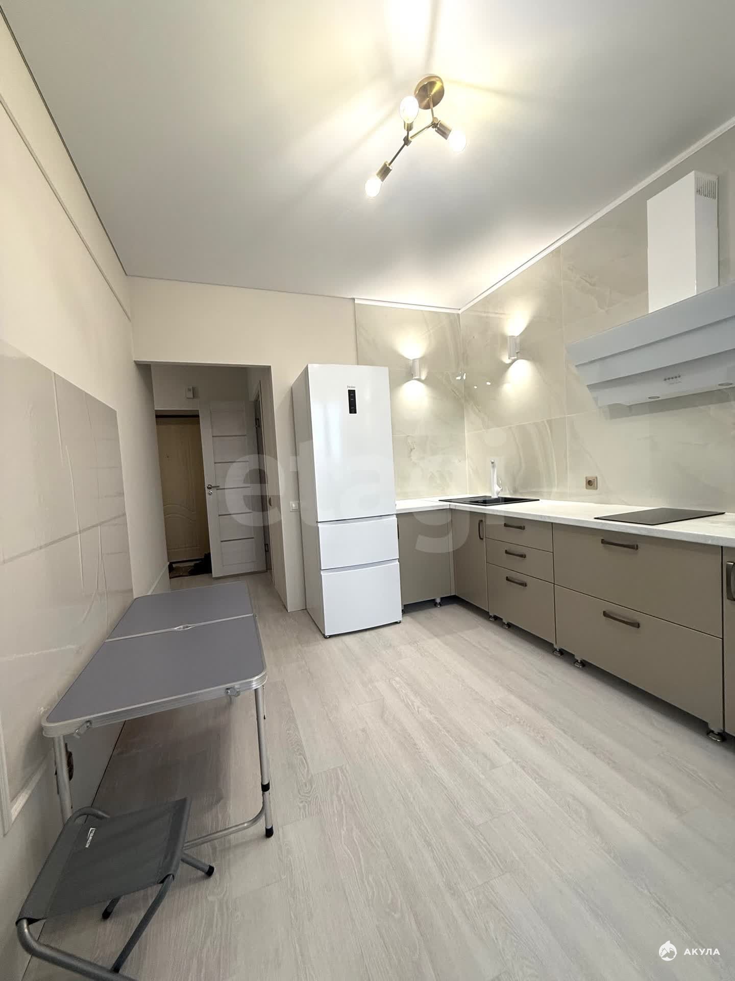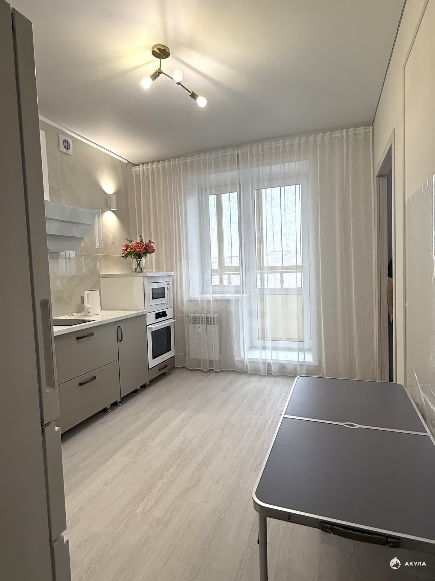 В квартире имеется вся необходимая техника и мебель:кухонный гарнитур, чайник, вытяжка, индукционная плита, духовой шкаф, микроволновая печь, холодильник, обеденная зона, двухспальная кровать, гардеробная, стиральная машинка