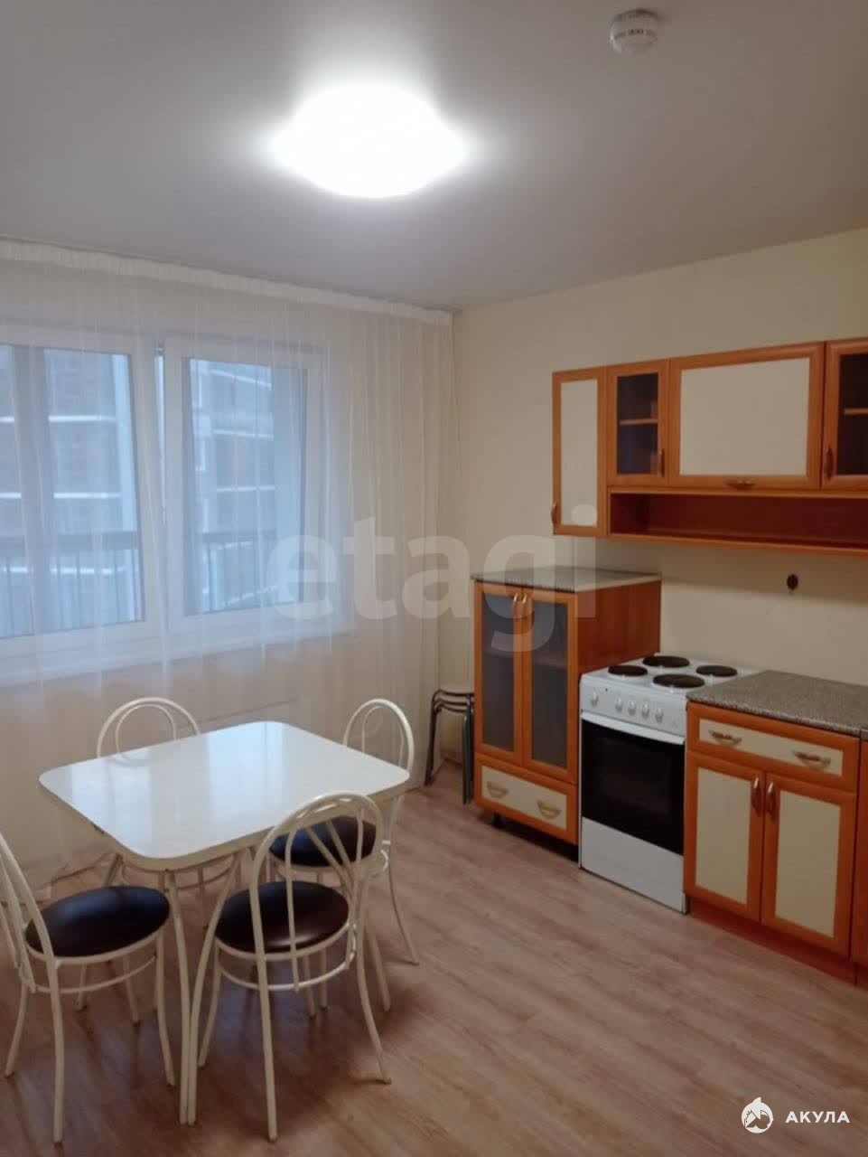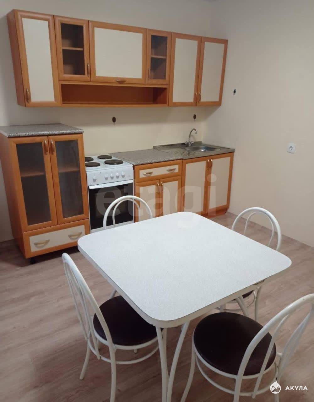 В квартире имеется : Кухонный гарнитур, кухонный стол, стулья , диван , шкаф , горка, холодильник , электрическая плита , стиральная машина .