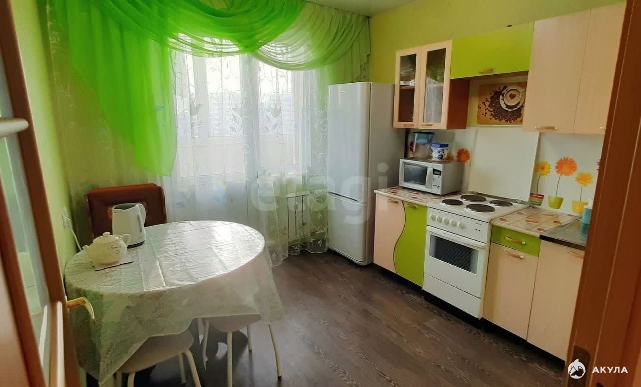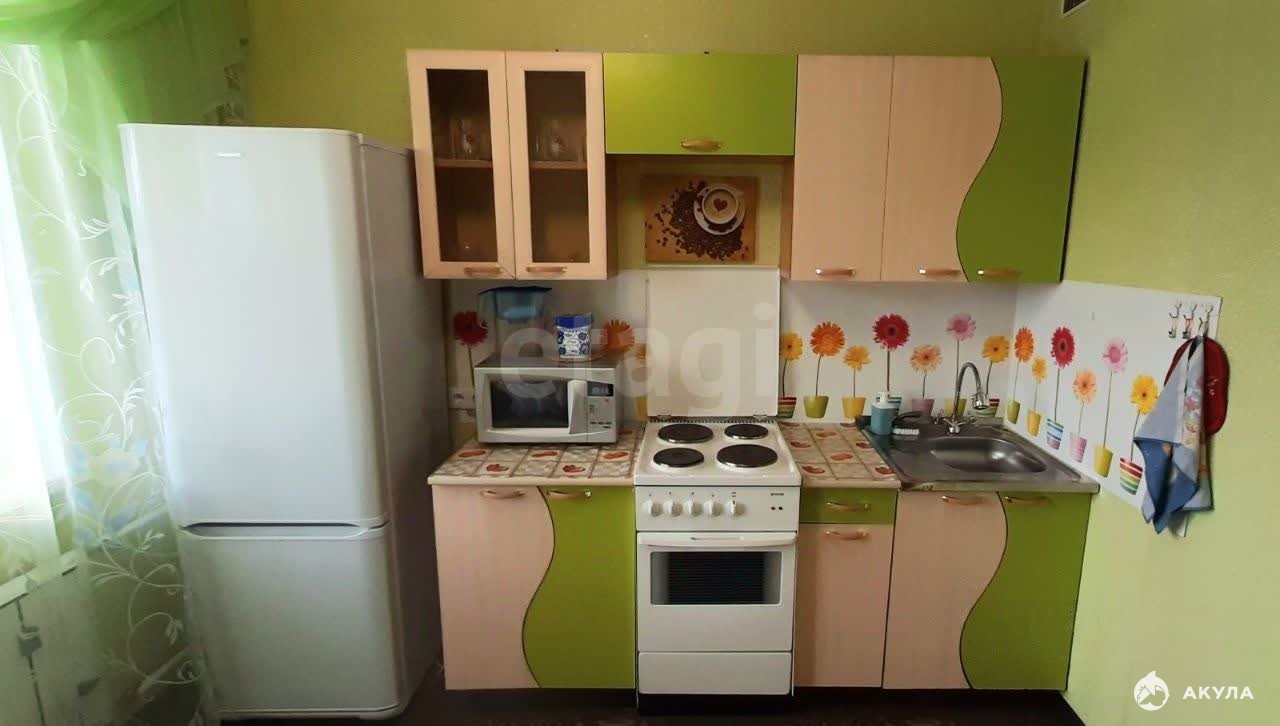 Имеется все необходимое для комфортного проживания: кухонный гарнитур, электрическая плита, холодильник, микроволновка, чайник, обеденная группа, шкаф, диван, стиральная машина, телевизор.