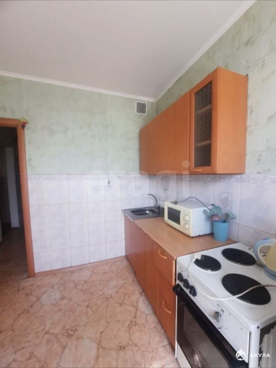 В квартире имеется: Двухспальная кровать, диван, журнальный стол, тумбочка, микроволновая печь, электрическая печь, холодильник, кухонный стол, стулья, чайник, стиральная машина.