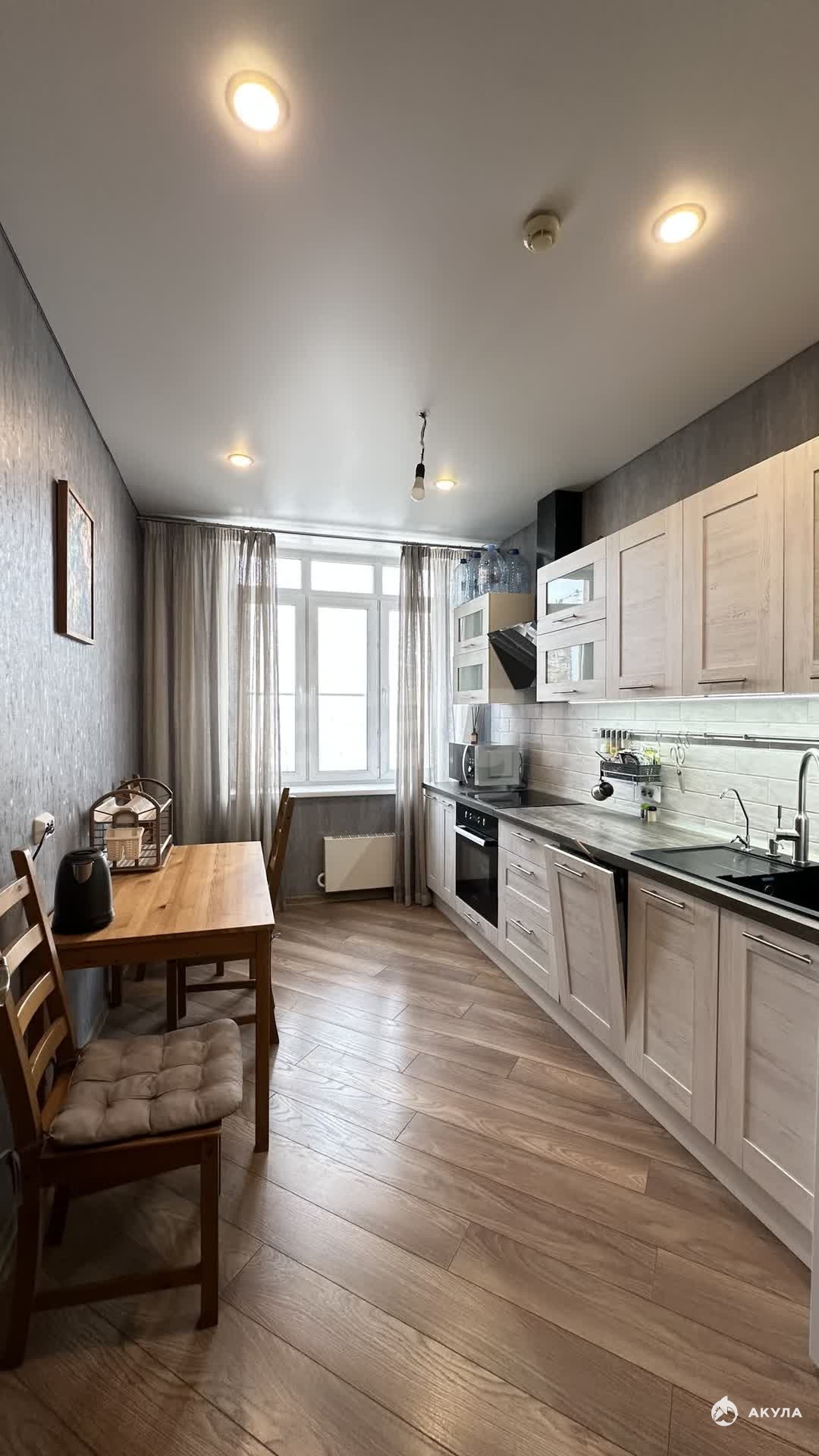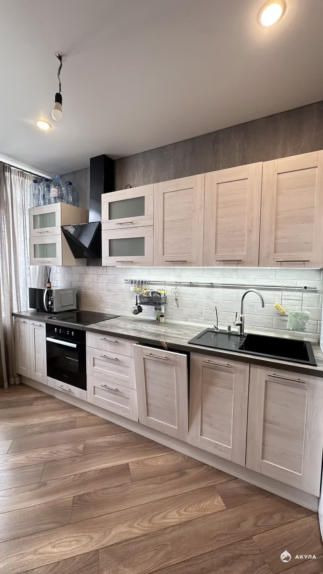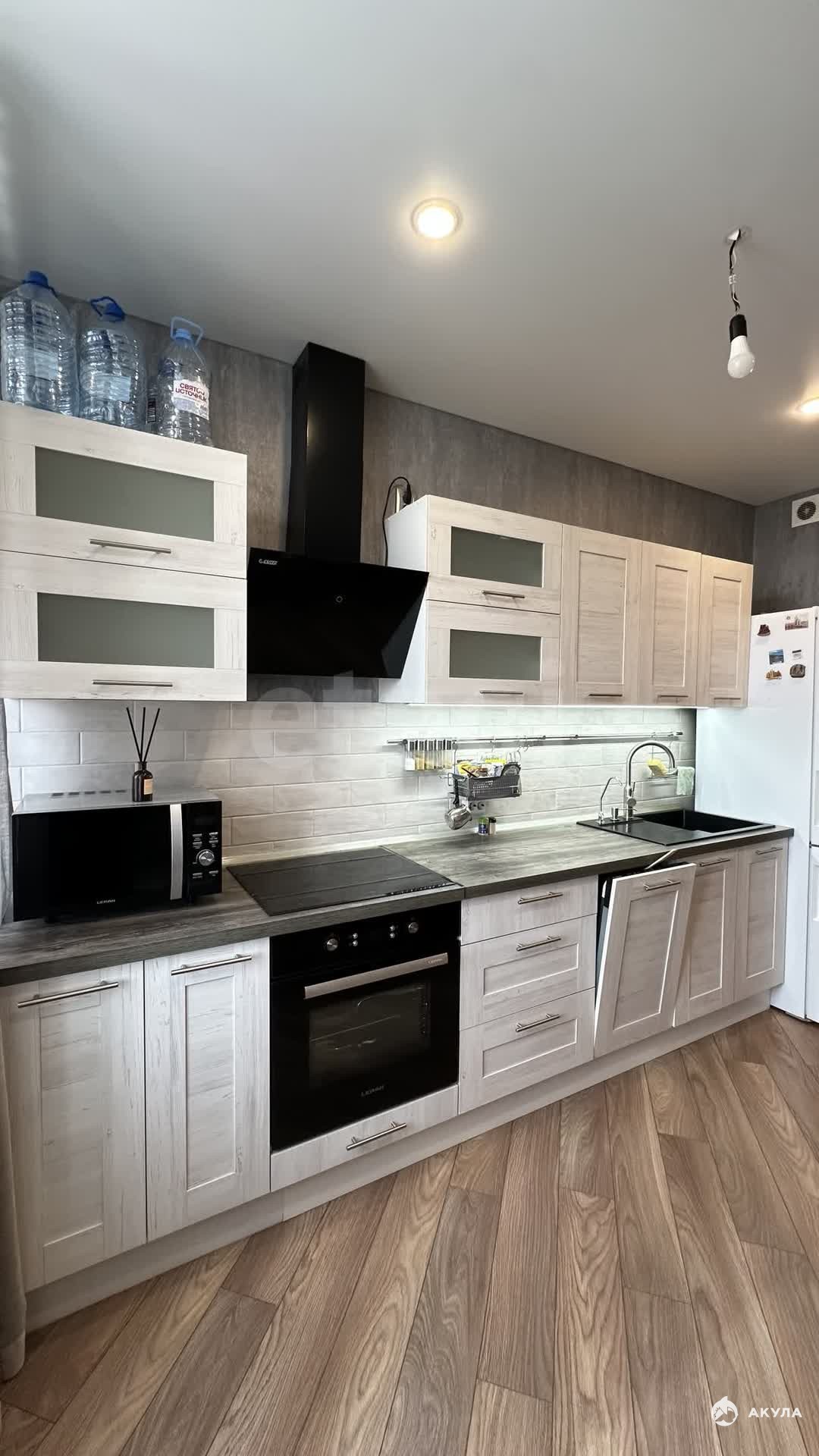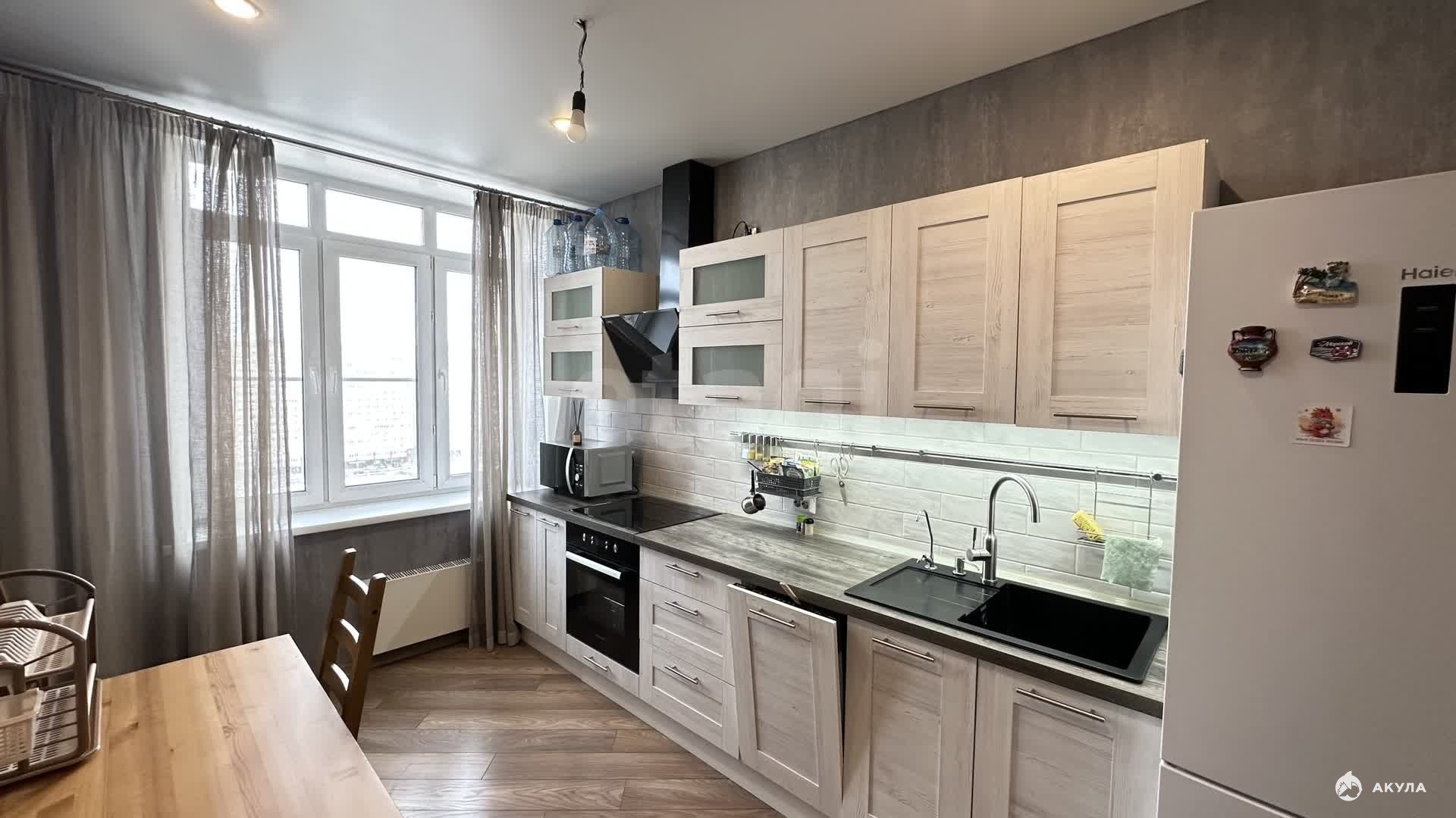 В квартире вы найдете: • Кухонный гарнитур, встроенный духовой шкаф, плиту, СВЧ печь, холодильник, чайник, диван, большую кровать 160х200, места для хранения вещей, телевизор, стиральную машинку.