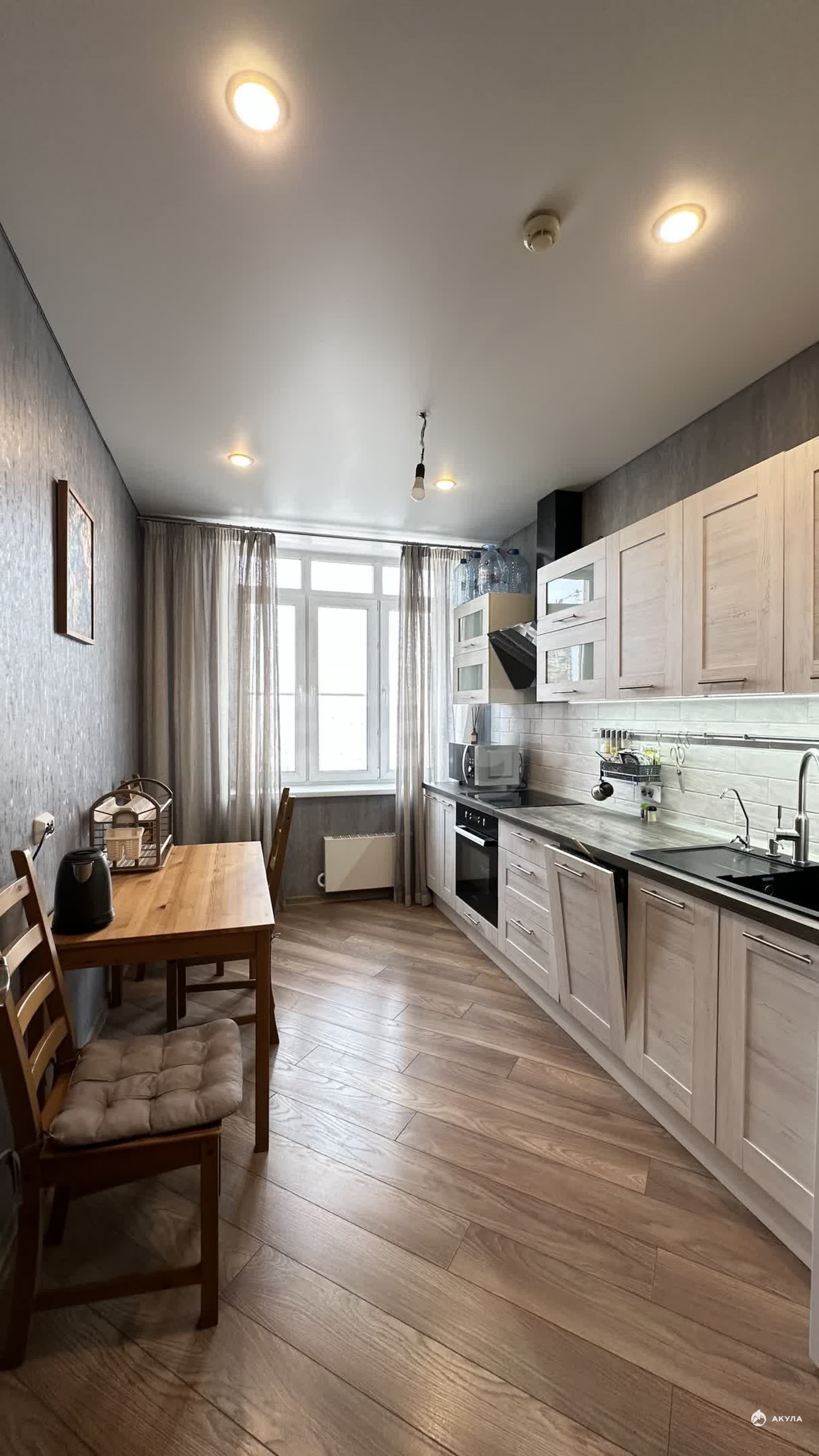 В квартире вы найдете: • Кухонный гарнитур, встроенный духовой шкаф, плиту, СВЧ печь, холодильник, чайник, диван, большую кровать 160х200, места для хранения вещей, телевизор, стиральную машинку.