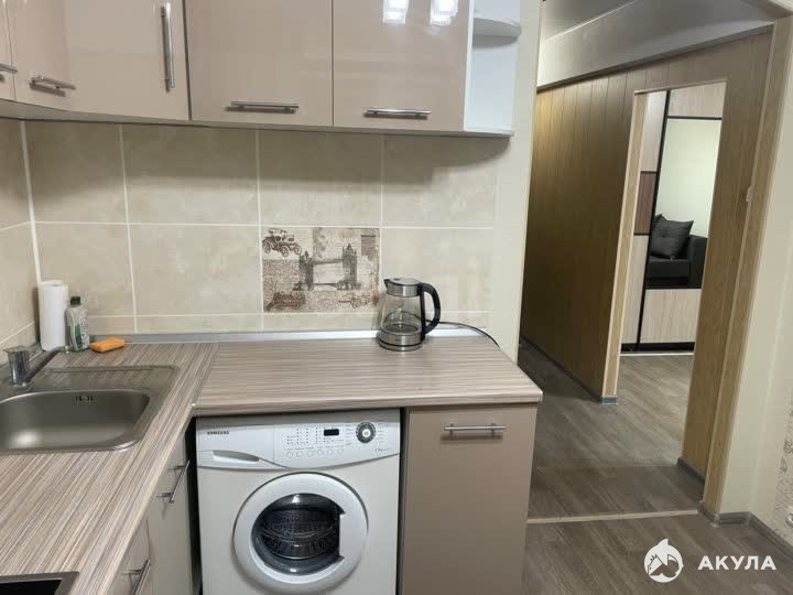 Имеется все необходимое для комфортного проживания: кух. гарнитур, электрическая плита с духовым шкафом, вытяжка, холодильник, обеденная группа, шкаф, диван, стиральная машина, кондиционер, телевизор.