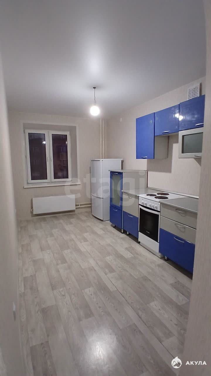 В квартире есть есть кухонный гарнитур, плита, холодильник, стиральная машинка.