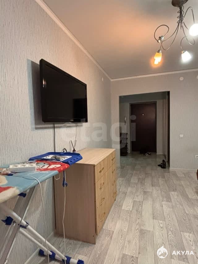 В квартире имеется: Кухонный гарнитур , кухонный стол , стулья , диван , шкаф , комод, холодильник , электрическая плита , стиральная машина , телевизор.