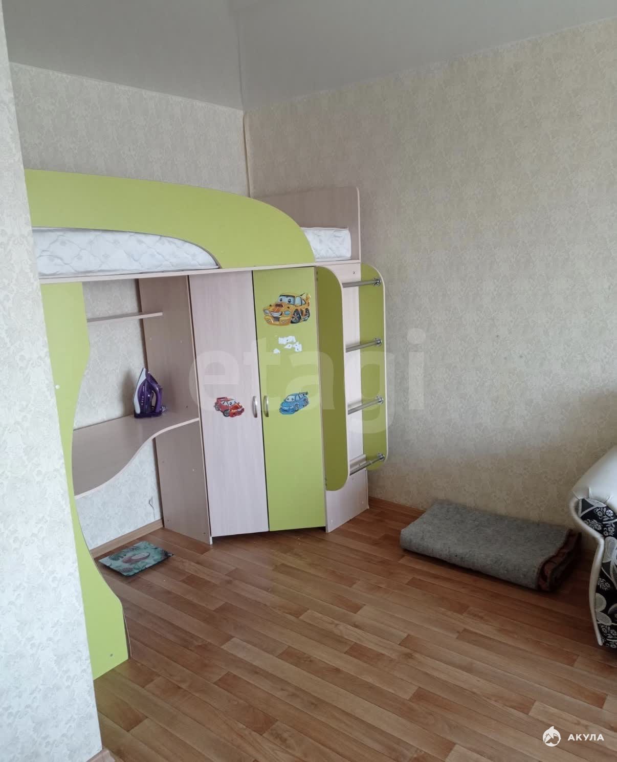 В квартире имеется вся необходимая техника и мебель:кухонный гарнитур, кухонный стол, стулья, холодильник, электрическая плита с духовым шкафом, диван, кресла, детская кровать на втором ярусе, шкаф, стиральная машинка