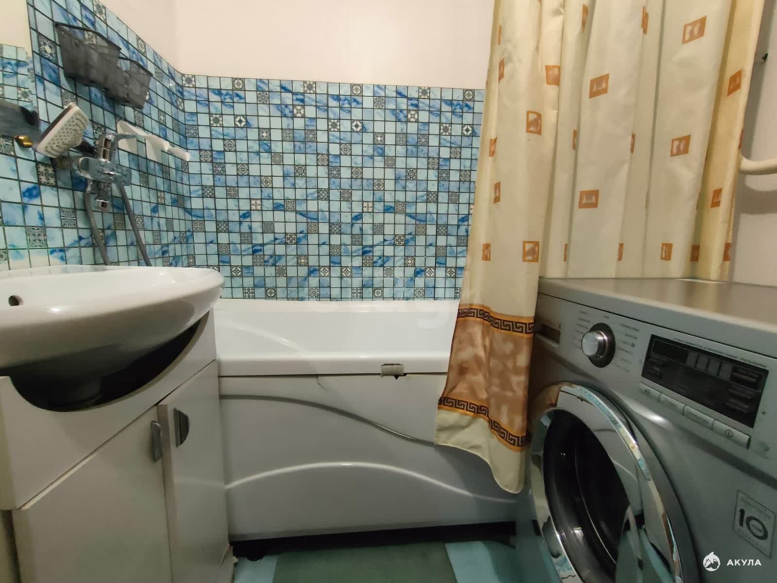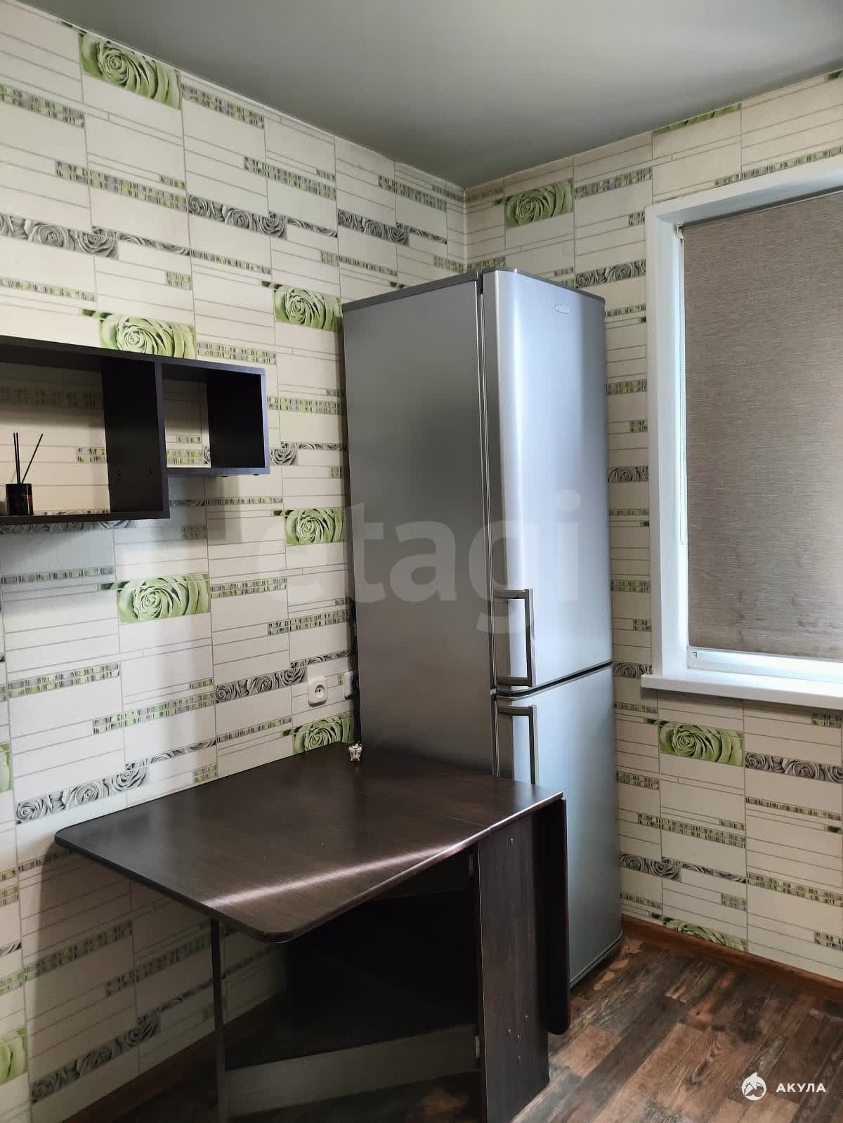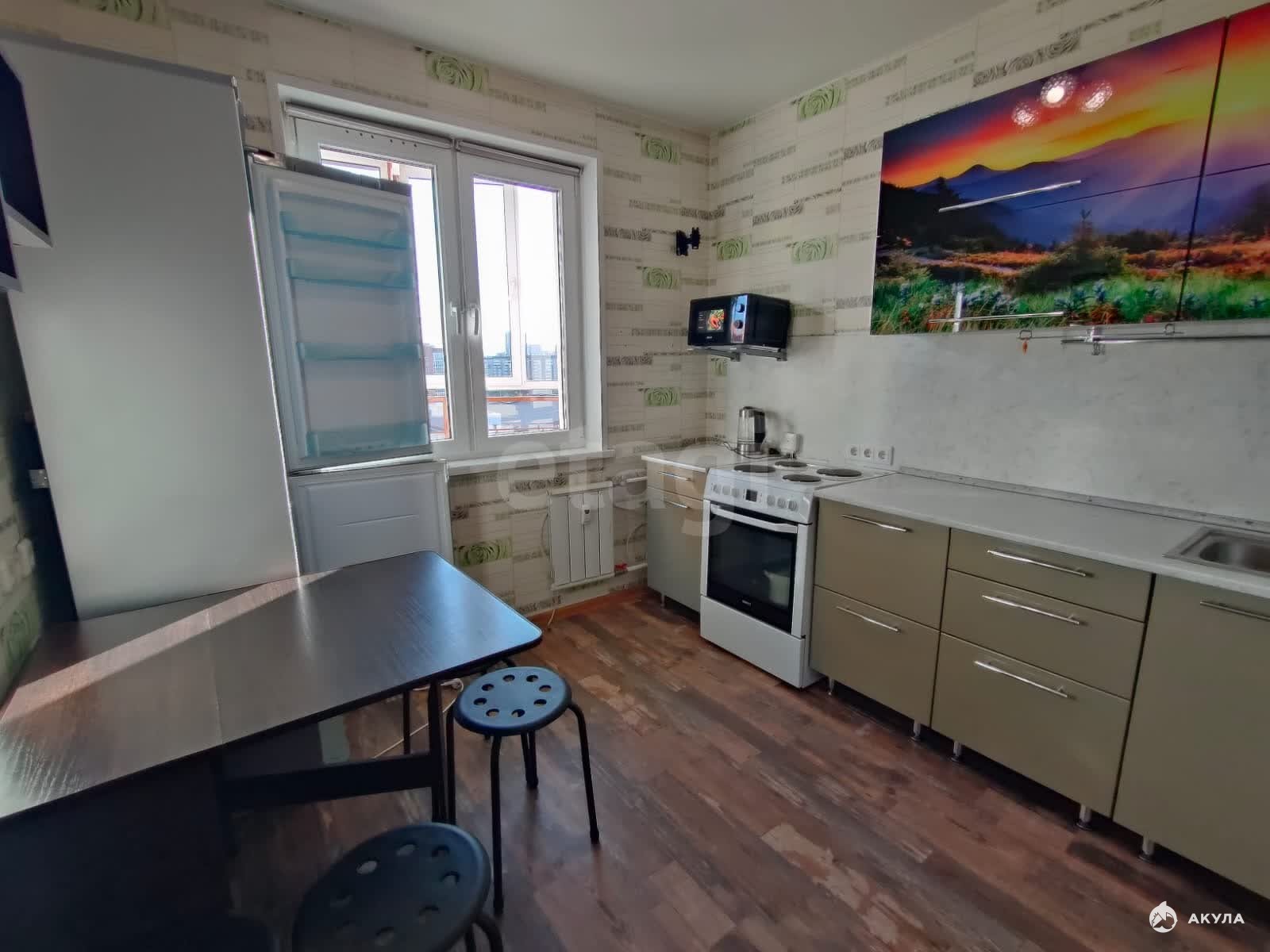 Есть все необходимое для комфортного проживания: кухонный гарнитур, электрическая плита, холодильник, микроволновая печь, обеденный стол, табуретки, кровать, телевизор, стиральная машина. Посуда в ассортименте.