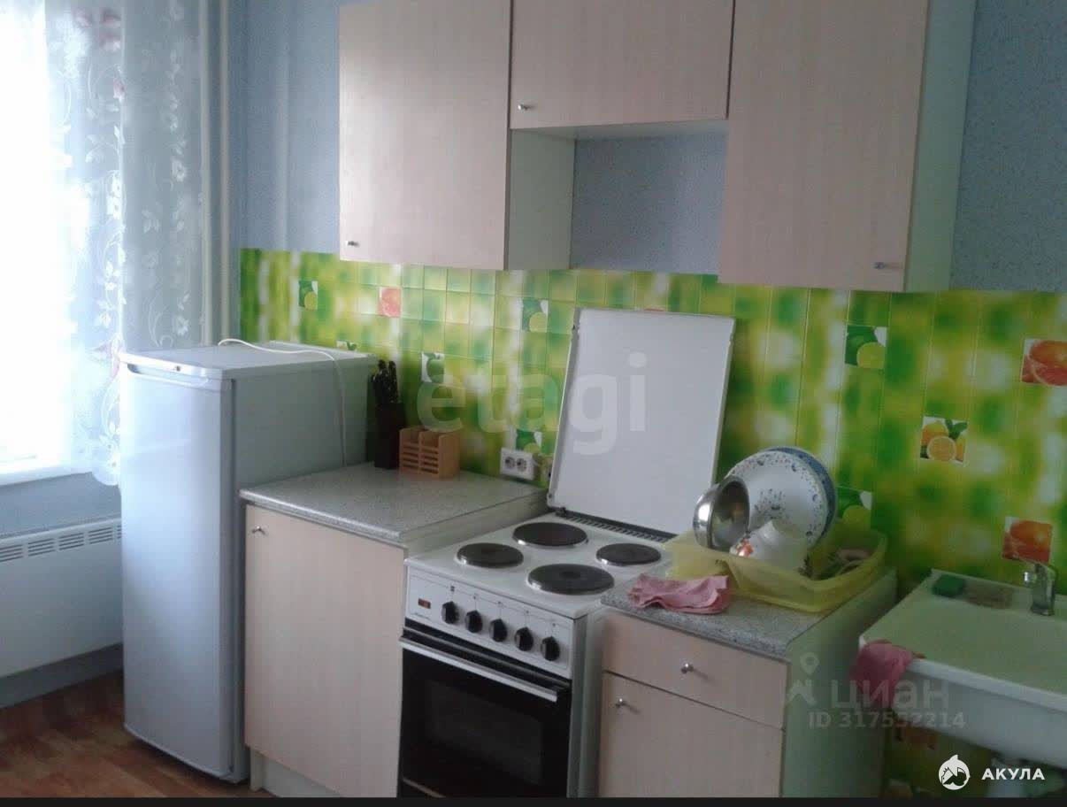 В квартире имеется : Кухонный гарнитур , кухонный стол , стулья , кровать , тумба , журнальный стол , стиральная машина , электрическая плита , холодильник.