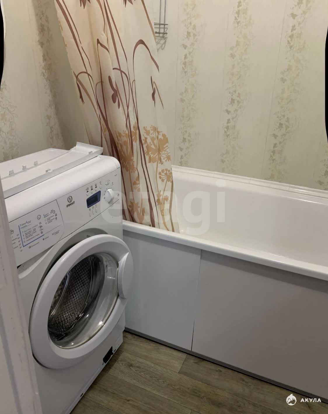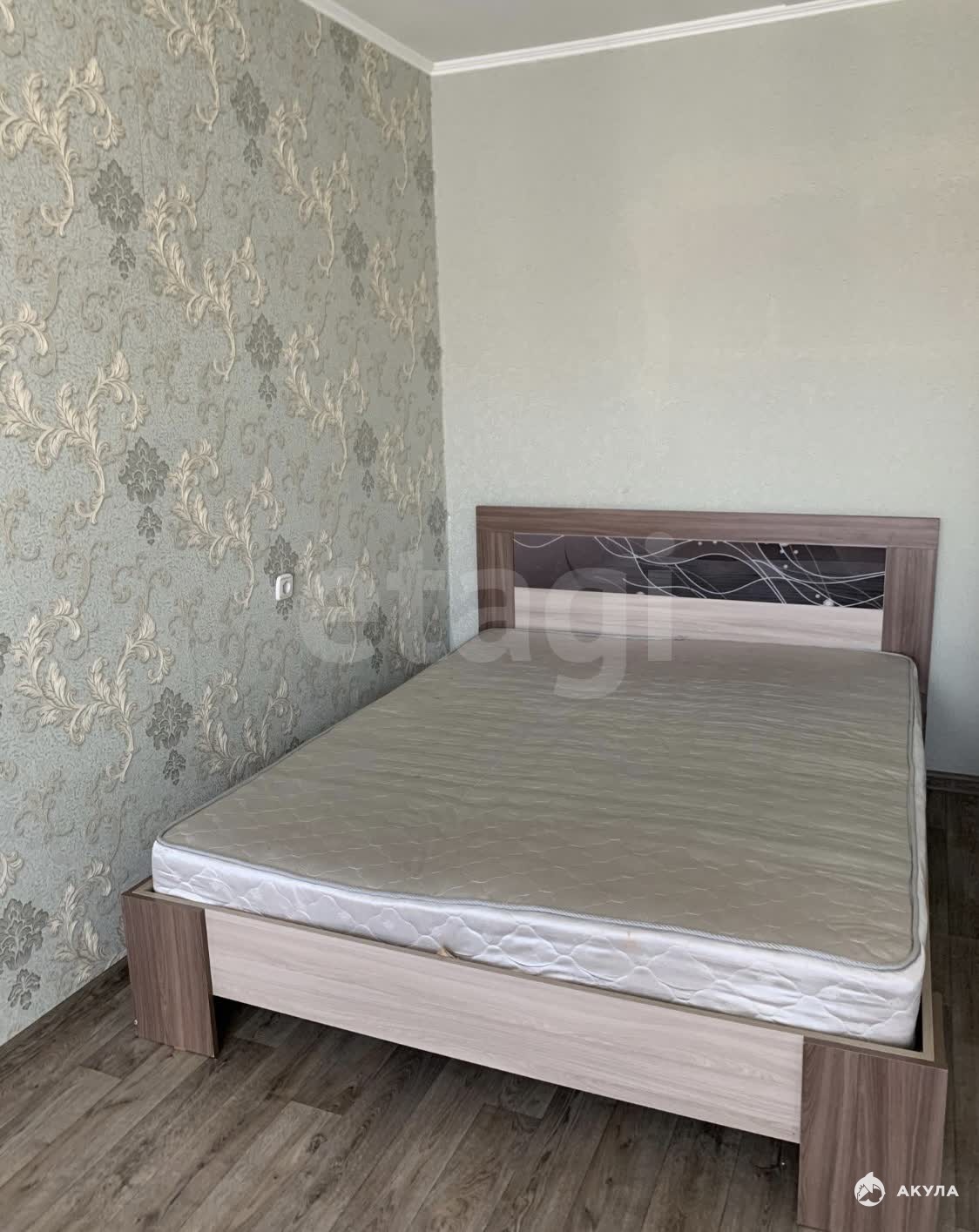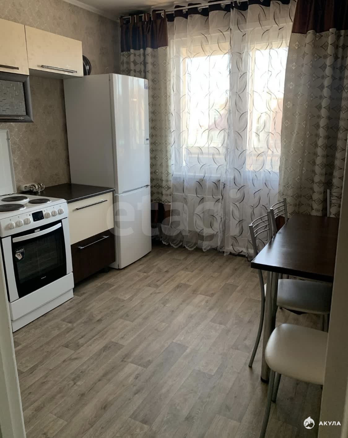 В квартире имеется : Кухонный гарнитур , электрическая плита, кухонный стол , стулья, холодильник, стиральная машинка, большая кровать, комод.