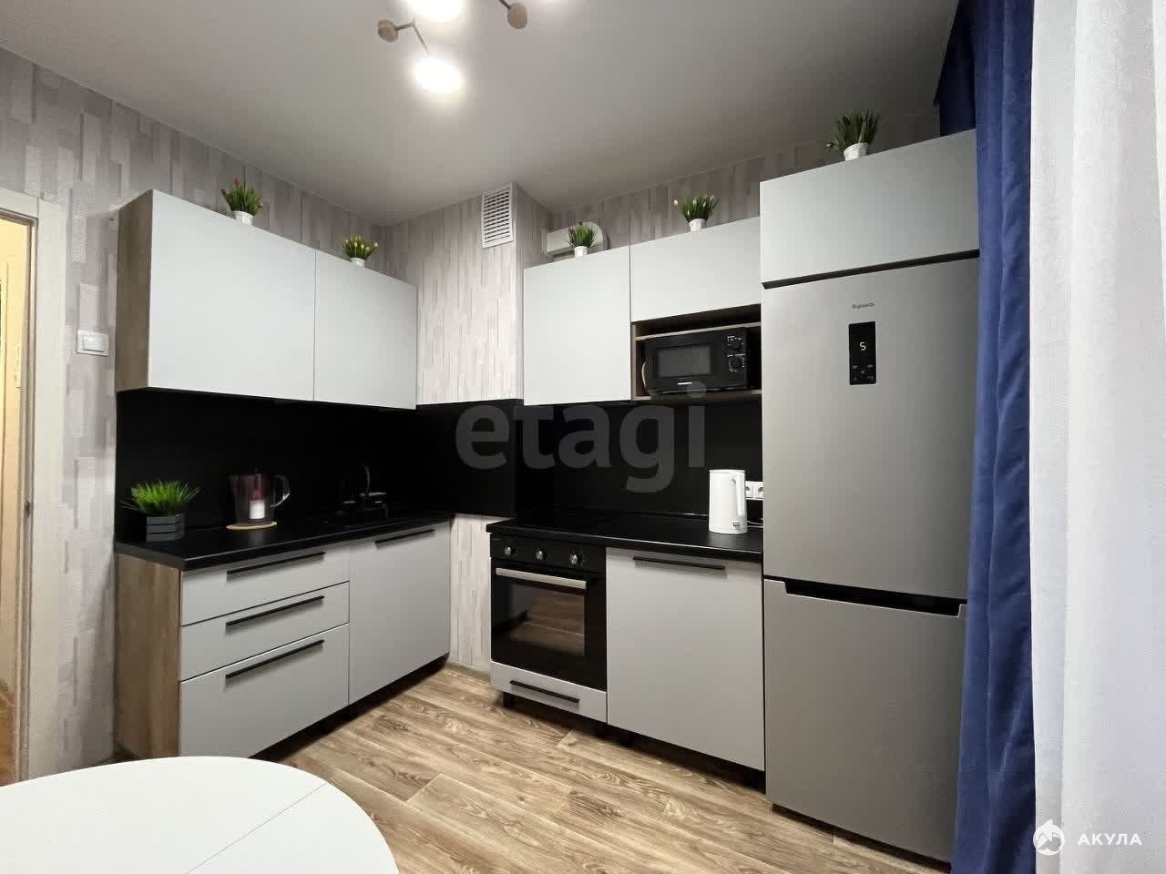 - кухонный гарнитур, варочная панель с вытяжкой, микроволновая печь, духовой шкаф, чайник, обеденный стол, холодильник. Вся необходимая посуда для приготовления и употребления пищи, столовые приборы.