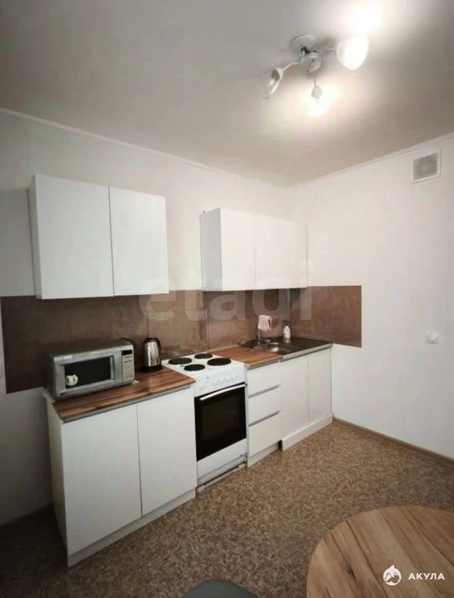 В квартире имеется: Кухонный гарнитур, кухонный стол, стулья, кровать, диван, шкаф, горка, микроволновая печь, электрическая плита.