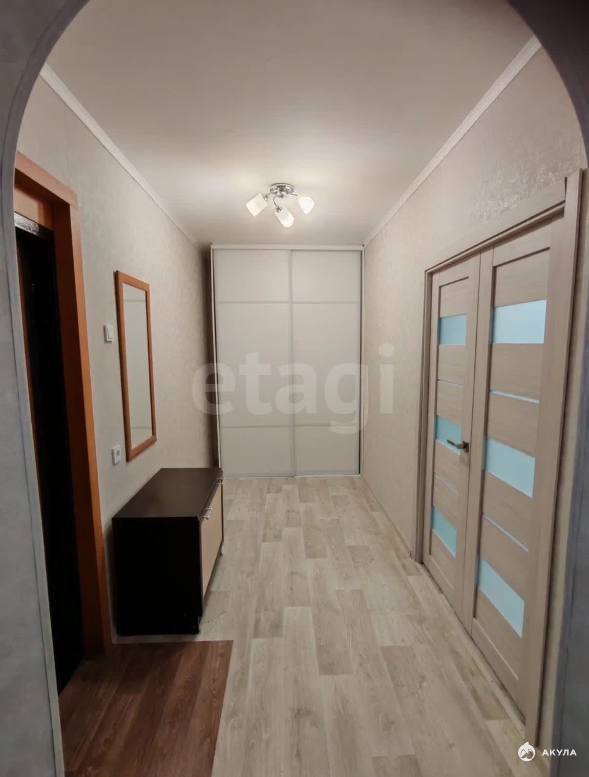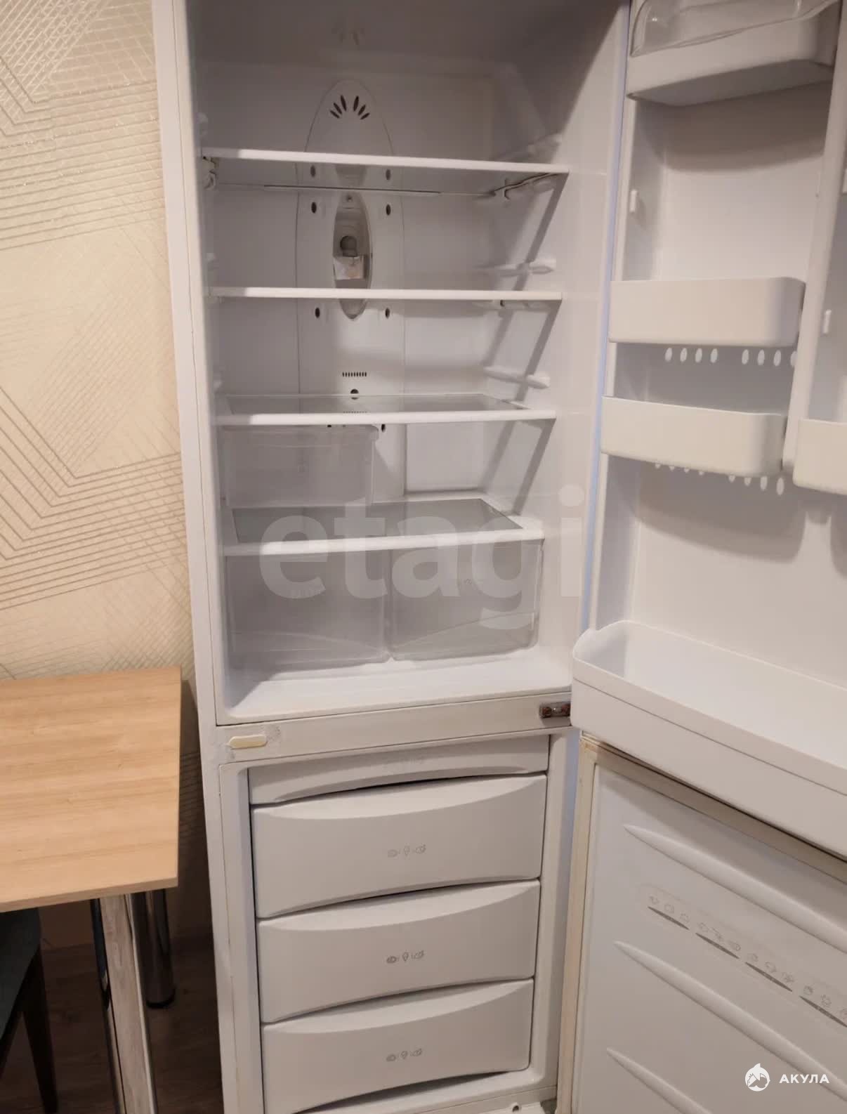 В квартире есть все необходимое для проживания: Холодильник, стиральная машинка, диван, шкаф для вещей, кухонный гарнитур, стол, стулья