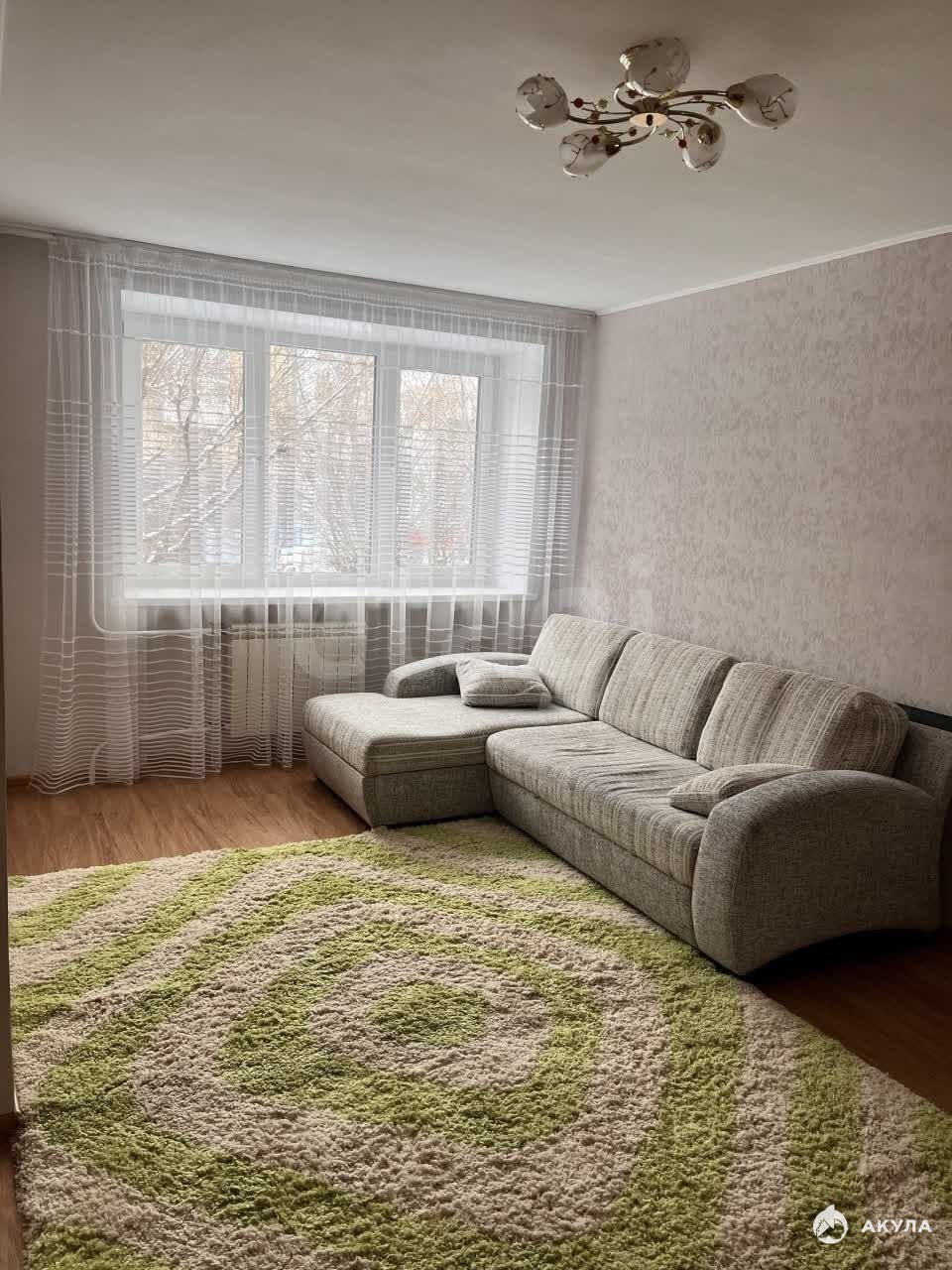 В квартире есть все для проживания: кухонный гарнитур, стол, стулья, чайник, плита, холодильник, микроволновка, стиральная машинка, большой вместительный шкаф, диван, гардеробная. (ковер на фото убрали)