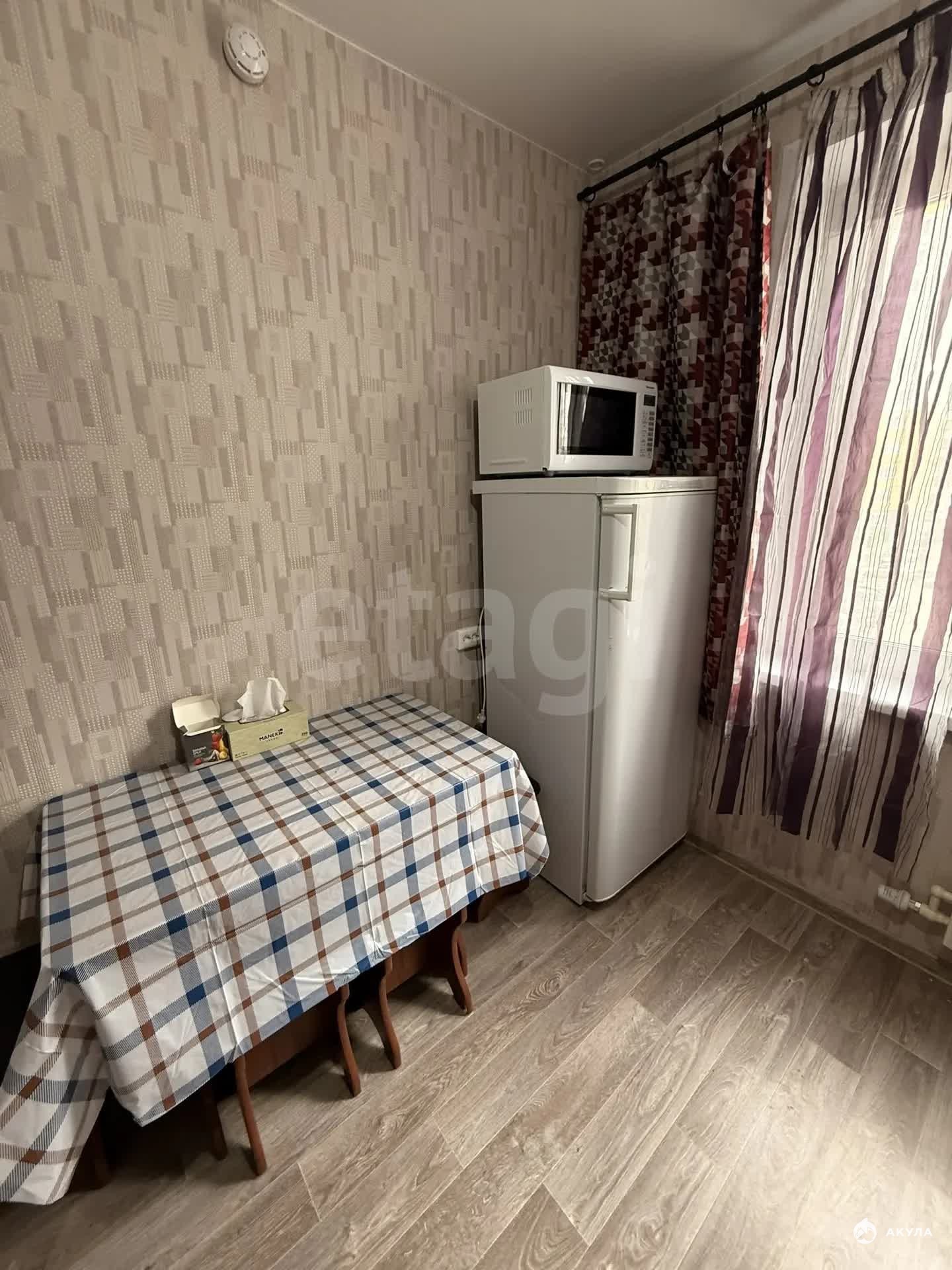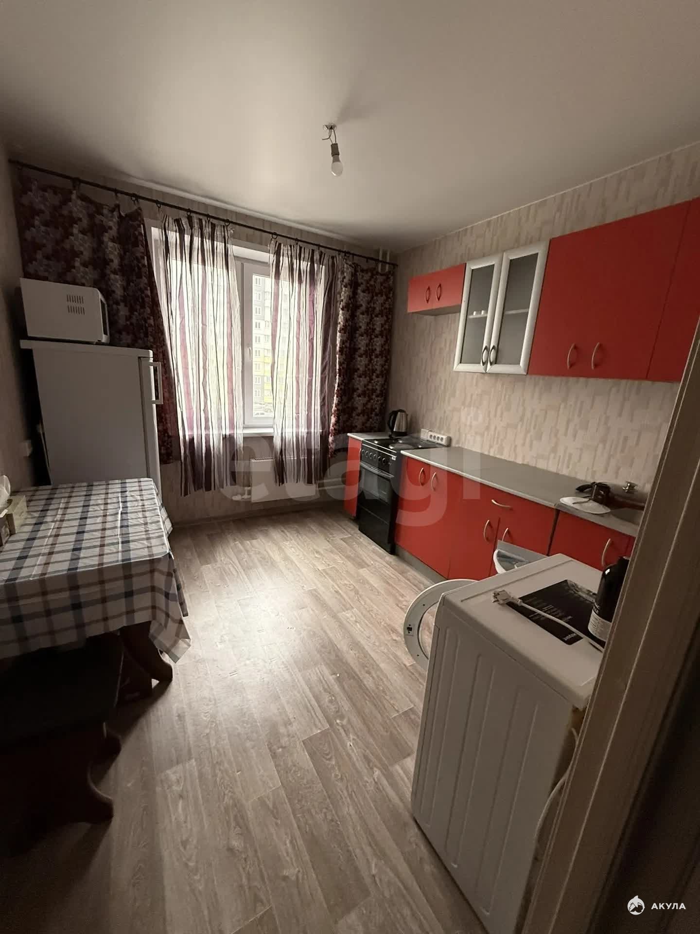 Сдаётся светлая однокомнатная квартира с косметическим ремонтом для длительного проживания. Вся необходимая мебель и техника уже на месте: удобный диван, кухонный гарнитур, стиральная и микроволновая печи, электрическая плита и телевизор.