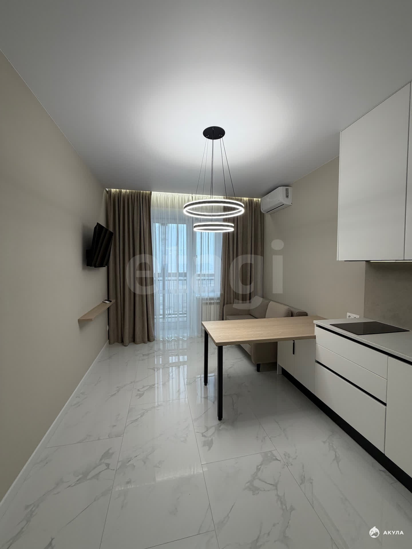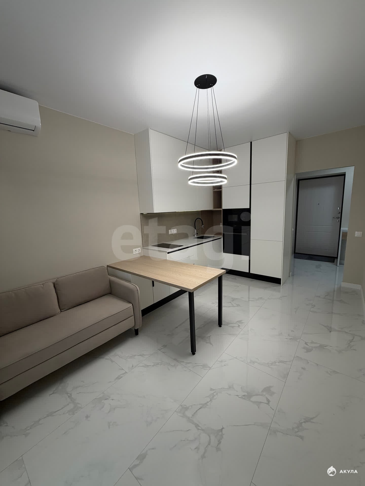 В квартире имеется : Кухонный гарнитур , барный стол , стулья , диван , кровать , спальный гарнитур , комод , гардеробная , шкаф, электрическая плита , духовой шкаф, посудомоечная машина, вытяжка, 2 кондиционера , микроволновая печь , стиральная машина , телевизор , умный дом.