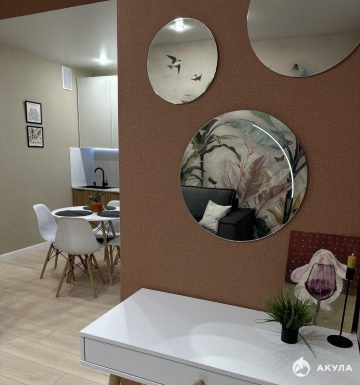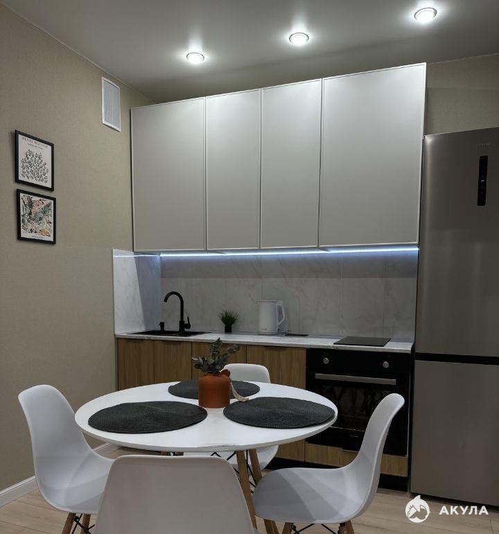 Квартира полностью укомплектована бытовой техникой: стиральная машина, холодильник, духовой шкаф, варочная панель, микроволновая печь, электрический чайник, телевизор со смарт-тв. Для хранения вещей вместительная гардеробная.