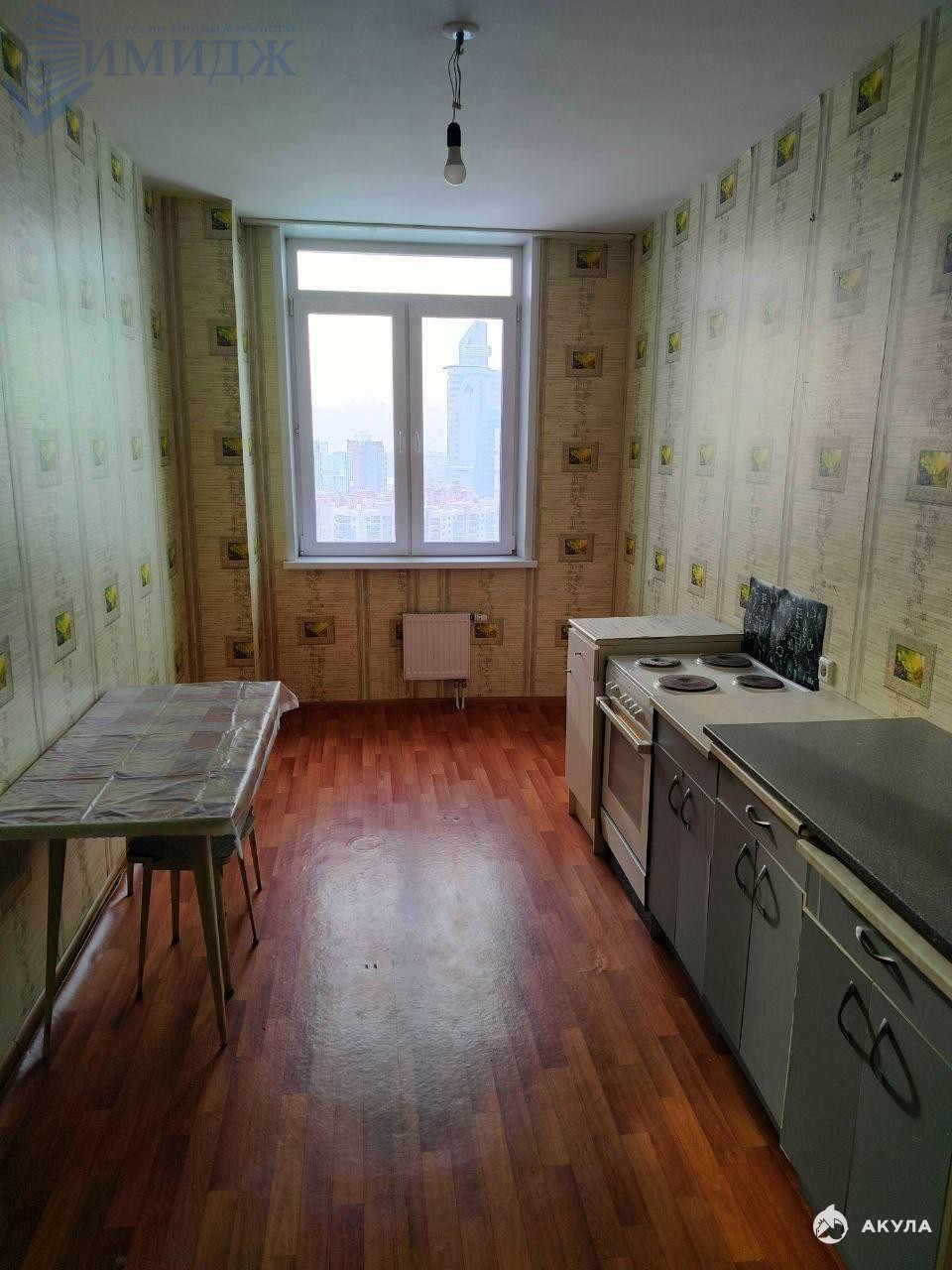 Без мебели. Только кухонные тумбы.