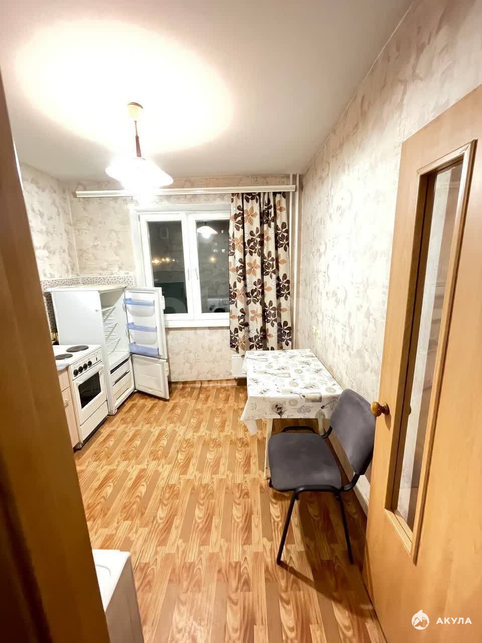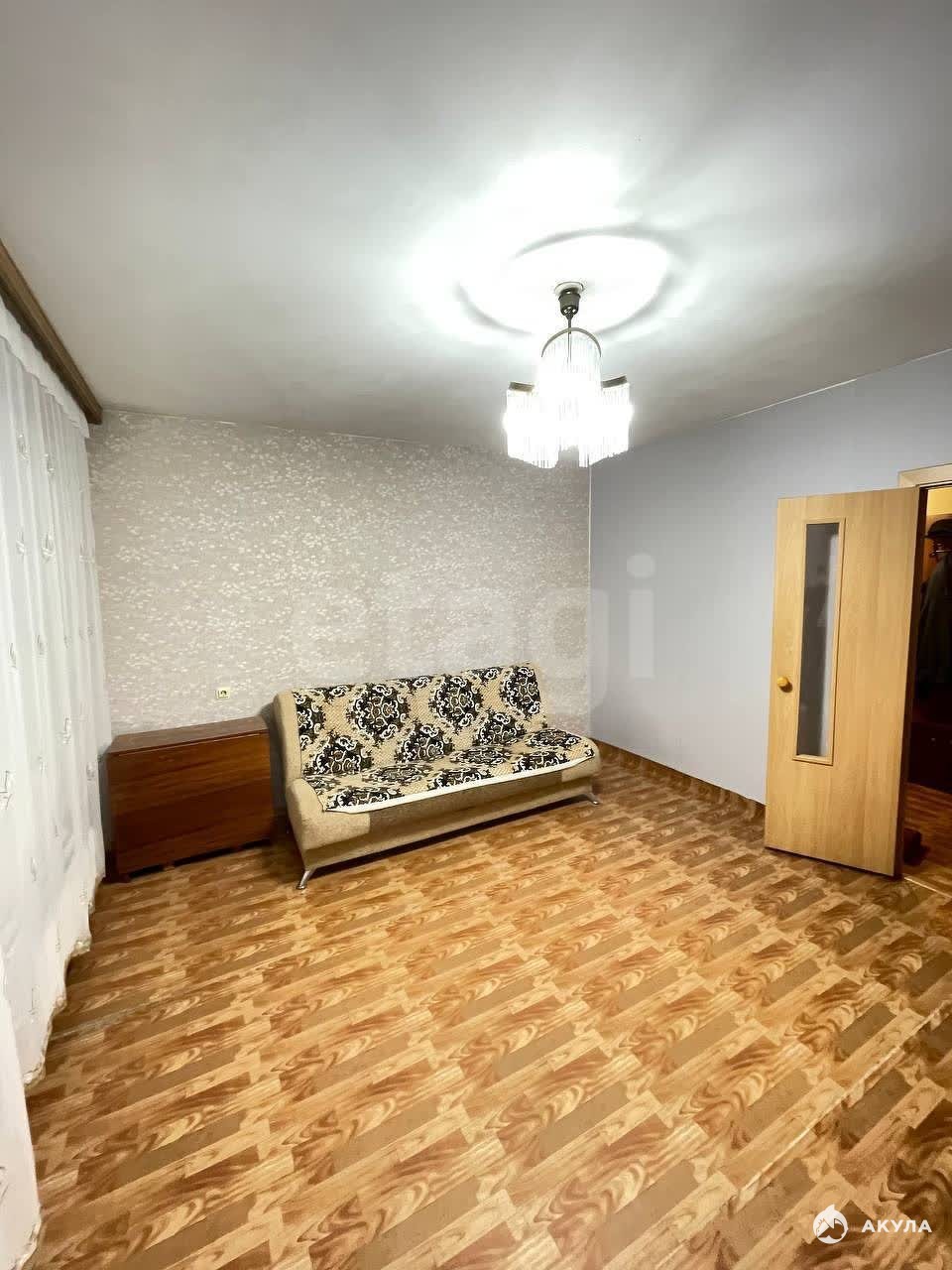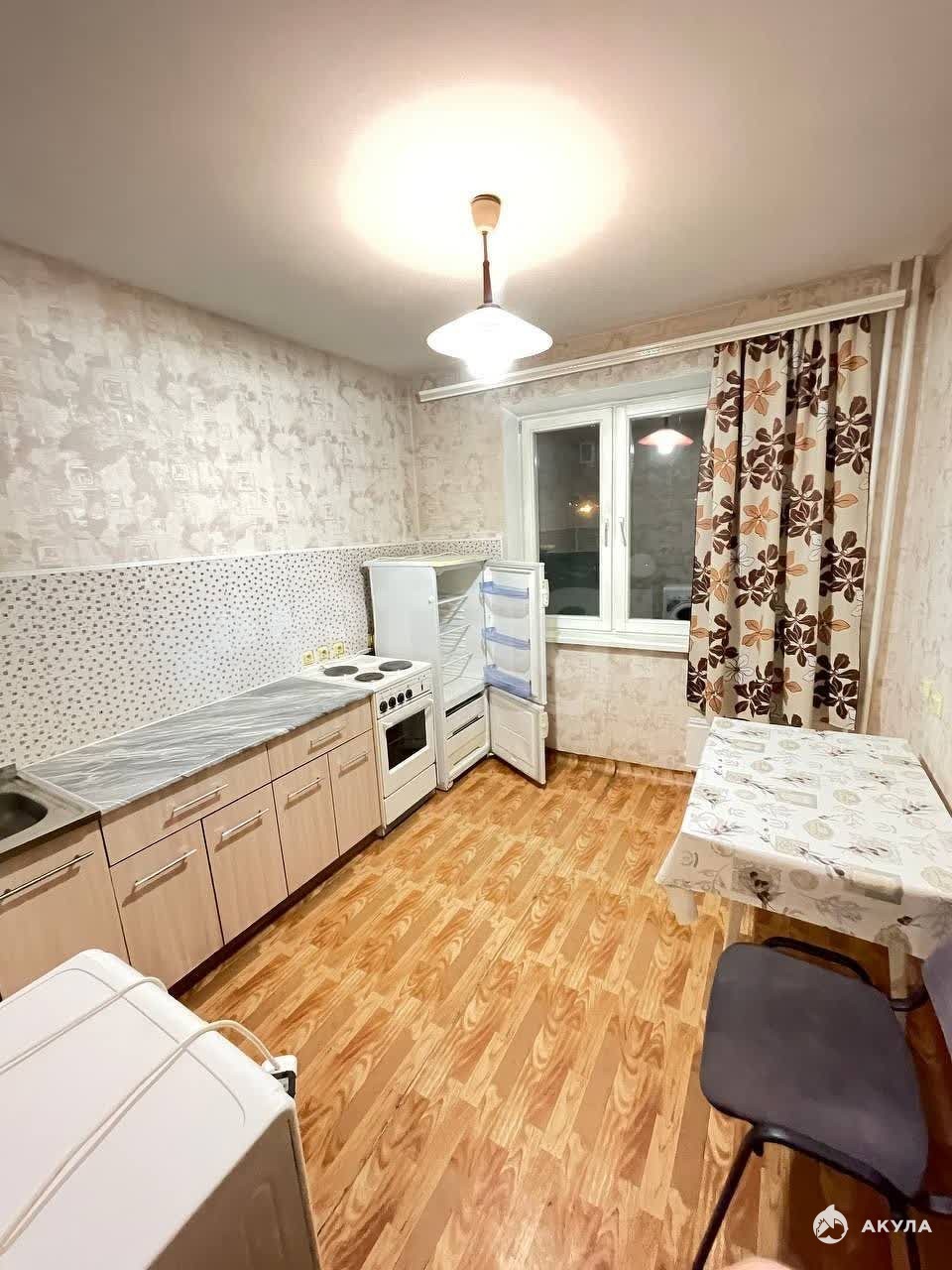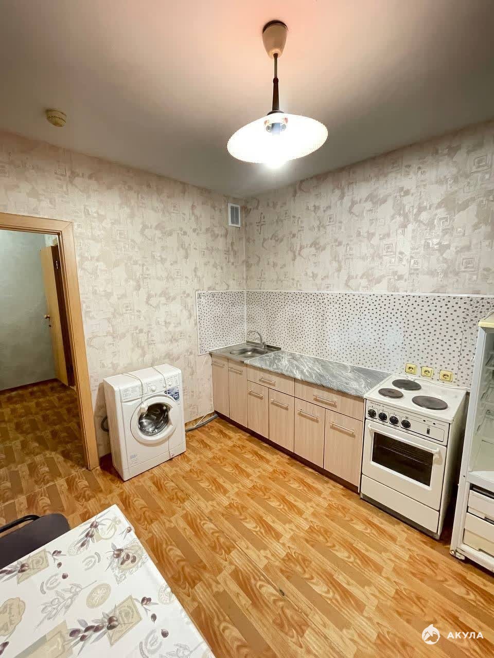В квартире имеется: Диван, кровать, шкаф, кухонный гарнитур, стол, стулья, плита, холодильник, стиральная машинка.