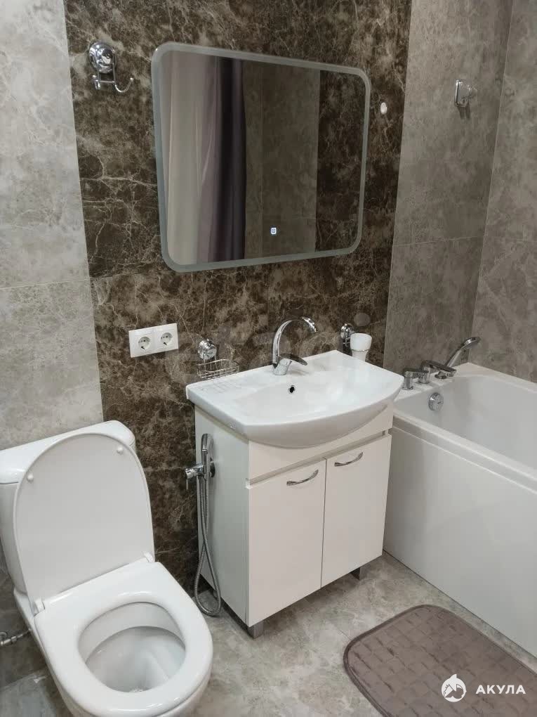 Санузел совмещенный, оборудован современной сантехникой. Есть гигиенический душ. Установлена стиральная машина с инверторным (бесшумным) двигателем, водонагреватель (на случай отсутствия горячей воды).