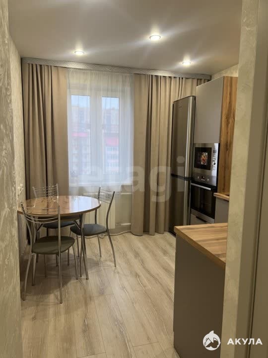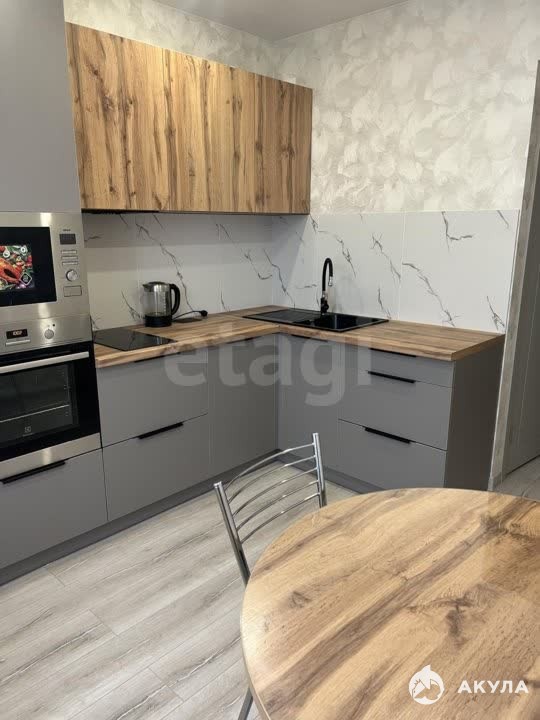 Из мебели в квартире только кухонный гарнитур, абсолютно новый полностью укомплектован ( духовой шкаф, микроволновая печь, варочная поверхность, вытяжка, холодильник).