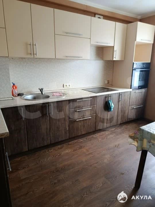 В квартире имеется вся необходимая техника и мебель: кровать, диван, тумба под телевизор, шкаф, кухонный гарнитур, кухонный стол, духовой шкаф, варочная панель, чайник, стиральная машинка,