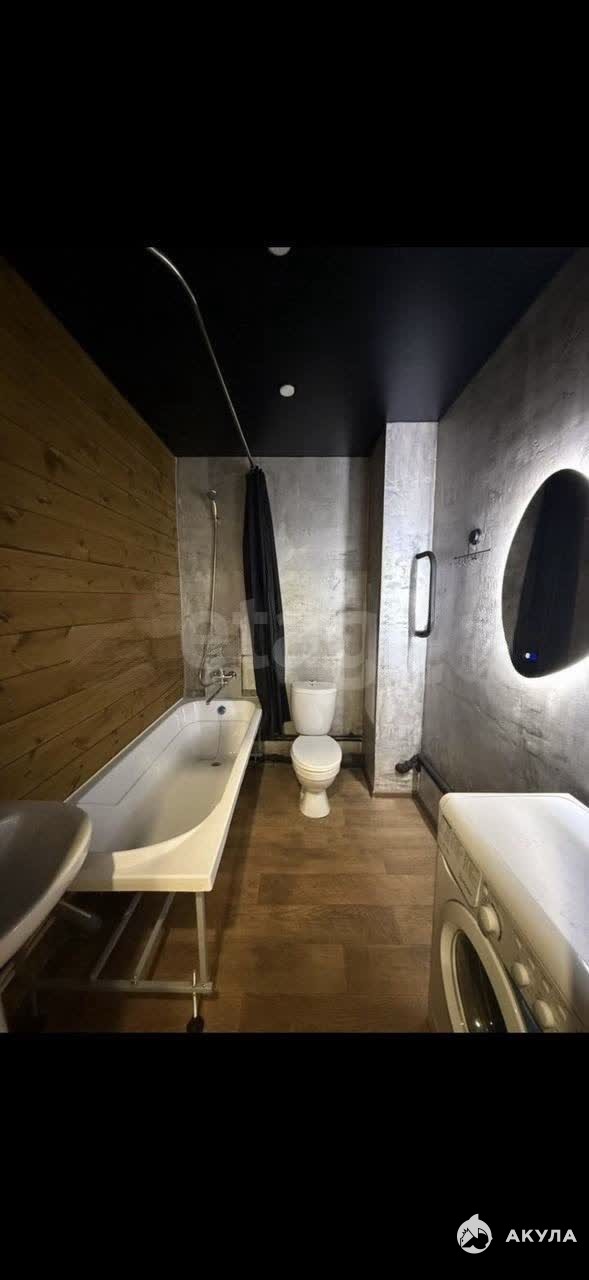 Ванная комната просторная, установлена стиральная машина. Расположение является ключевым преимуществом: в шаговой доступности находятся остановка общественного транспорта, магазины и популярный парк «Прищепка» с зоной отдыха у воды.