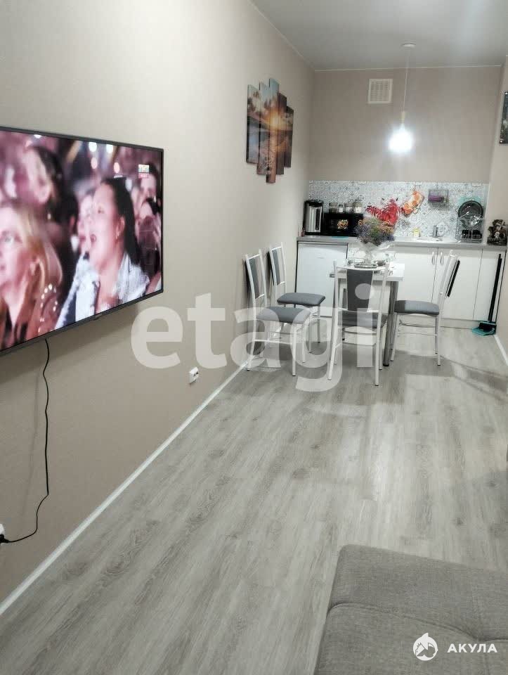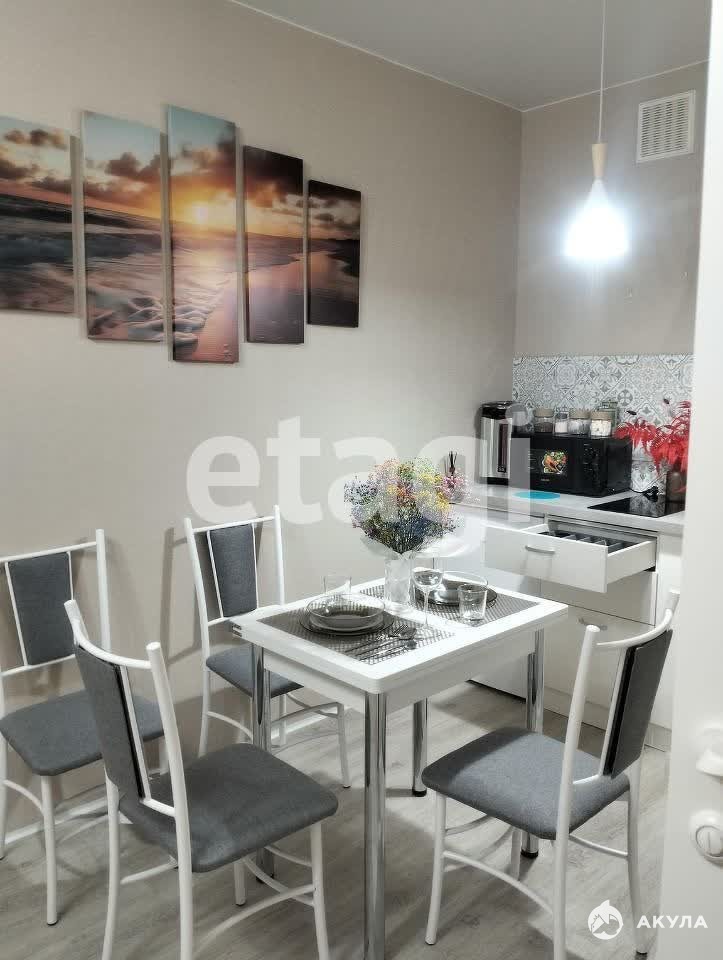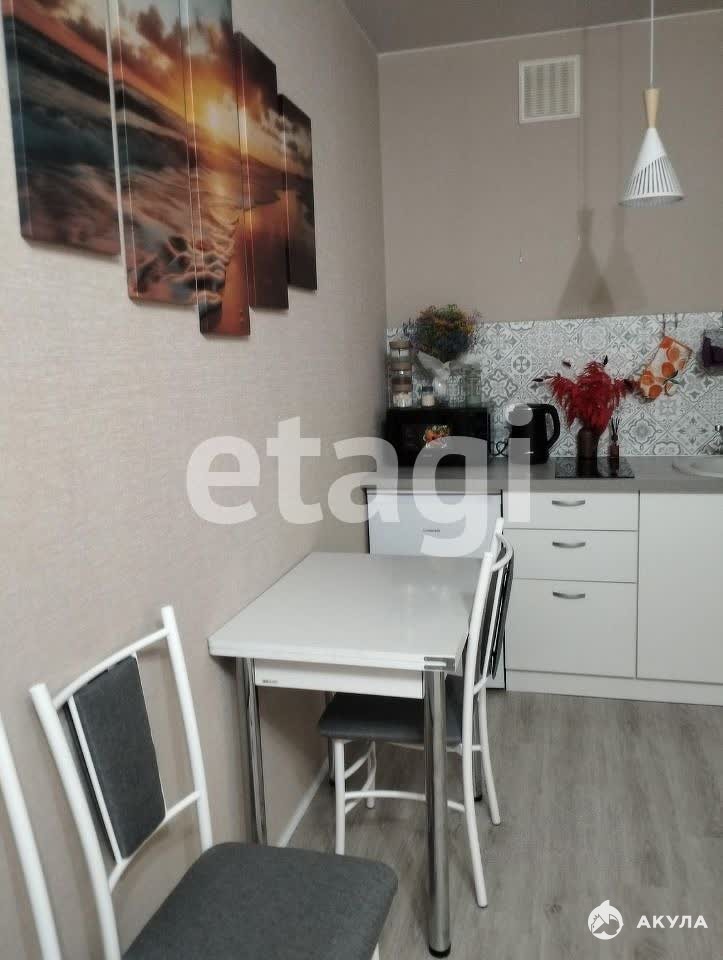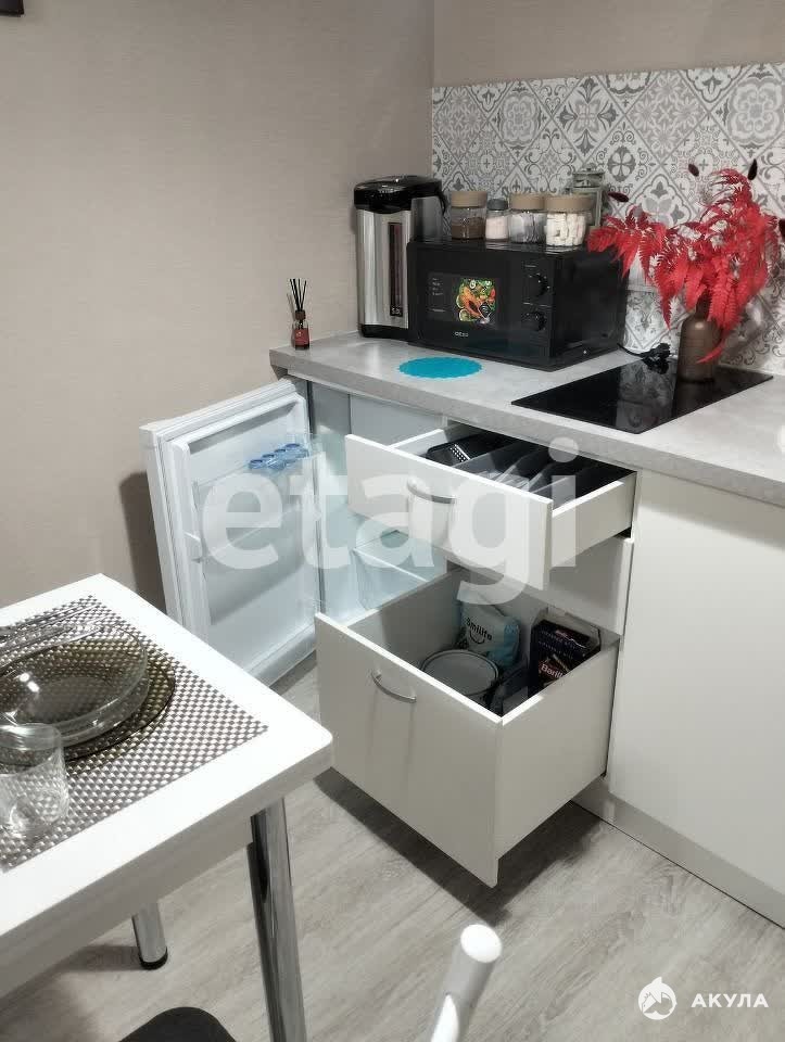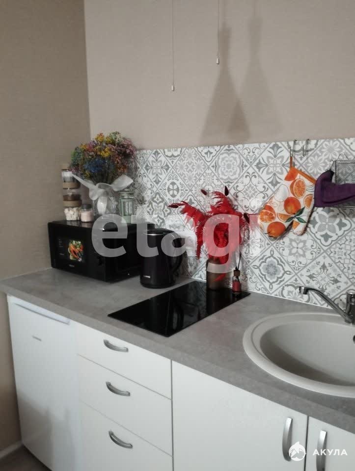В квартире имеется: Кухонный гарнитур, кухонный стол, стулья, диван, телевизор, холодильник, варочная панель, микроволновая печь, чайник, кровать, шкаф-купе, стиральная машина.