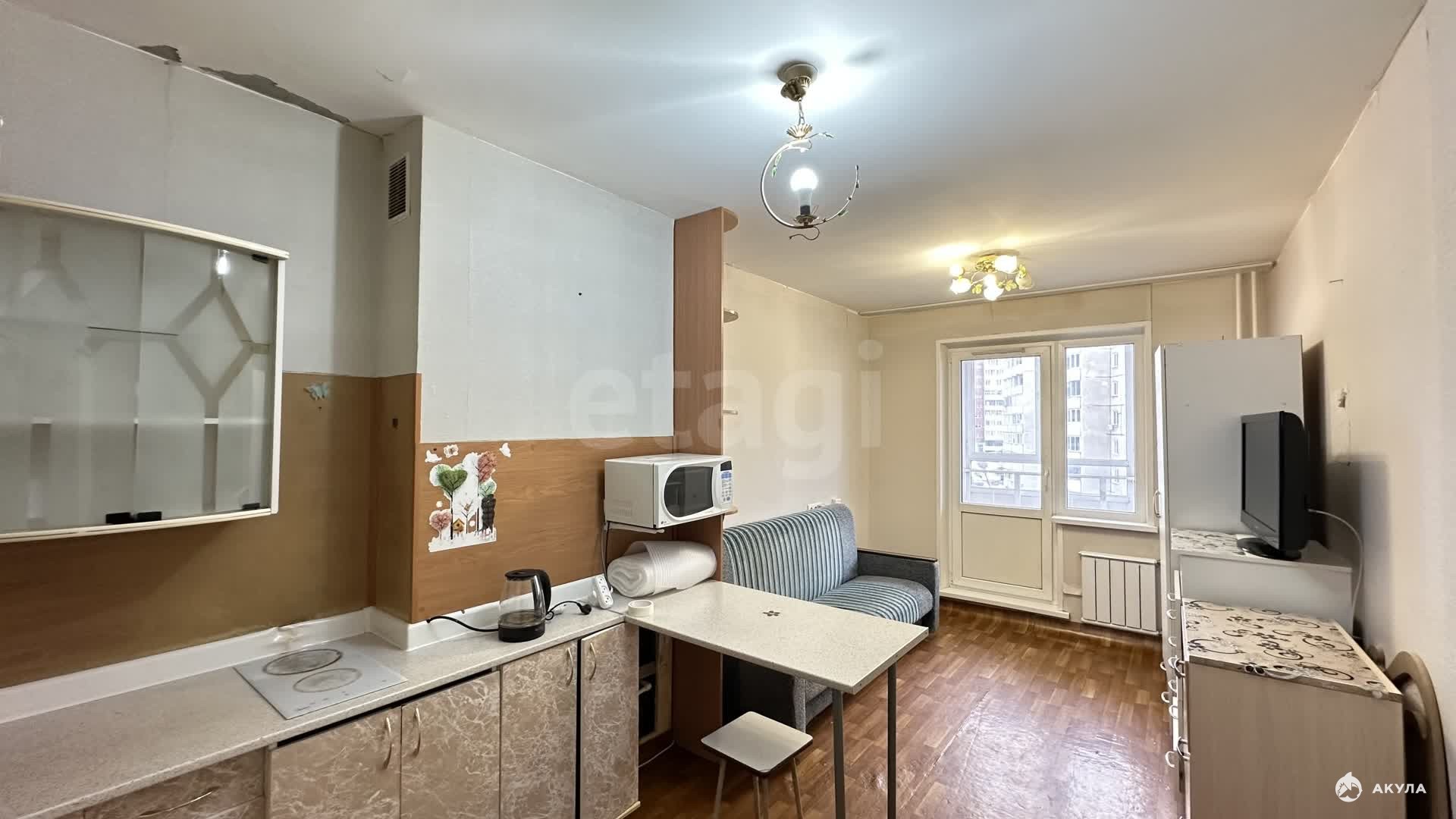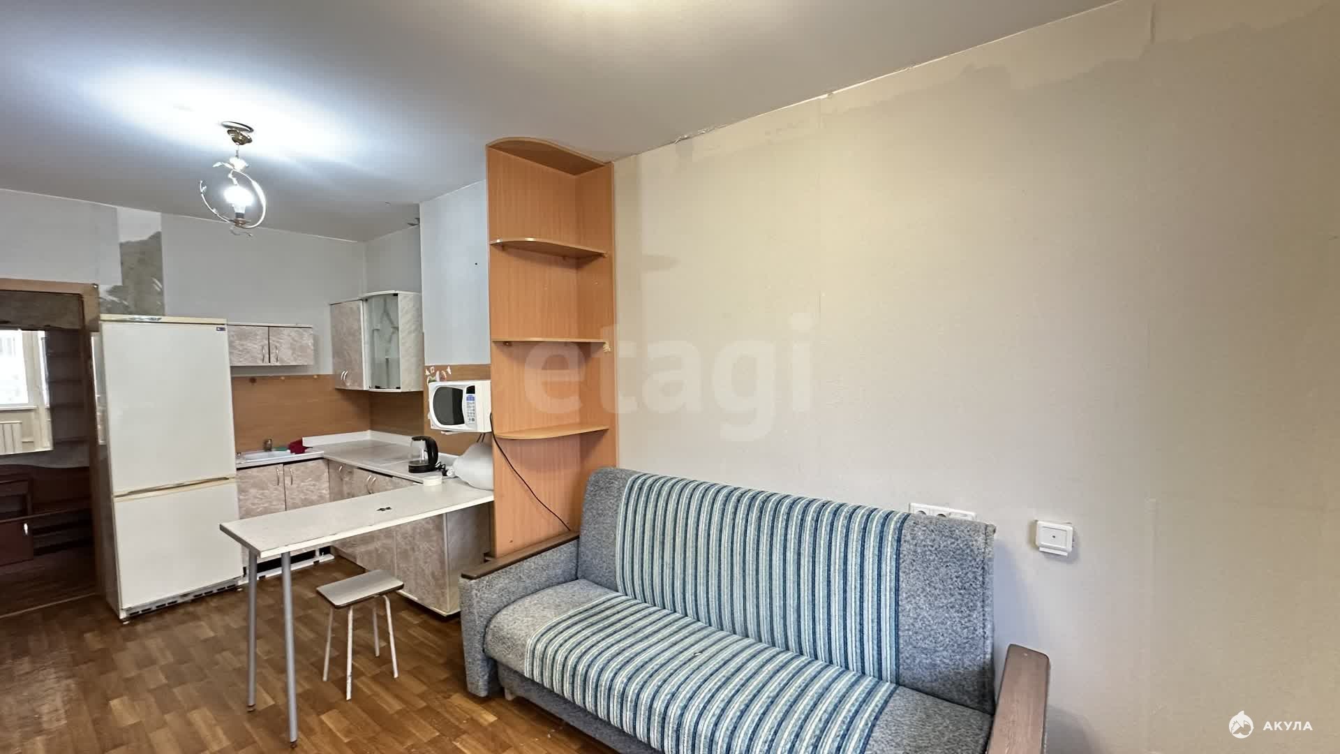 В квартире есть все необходимое для проживания: диван. кровать, вся техника рабочая.