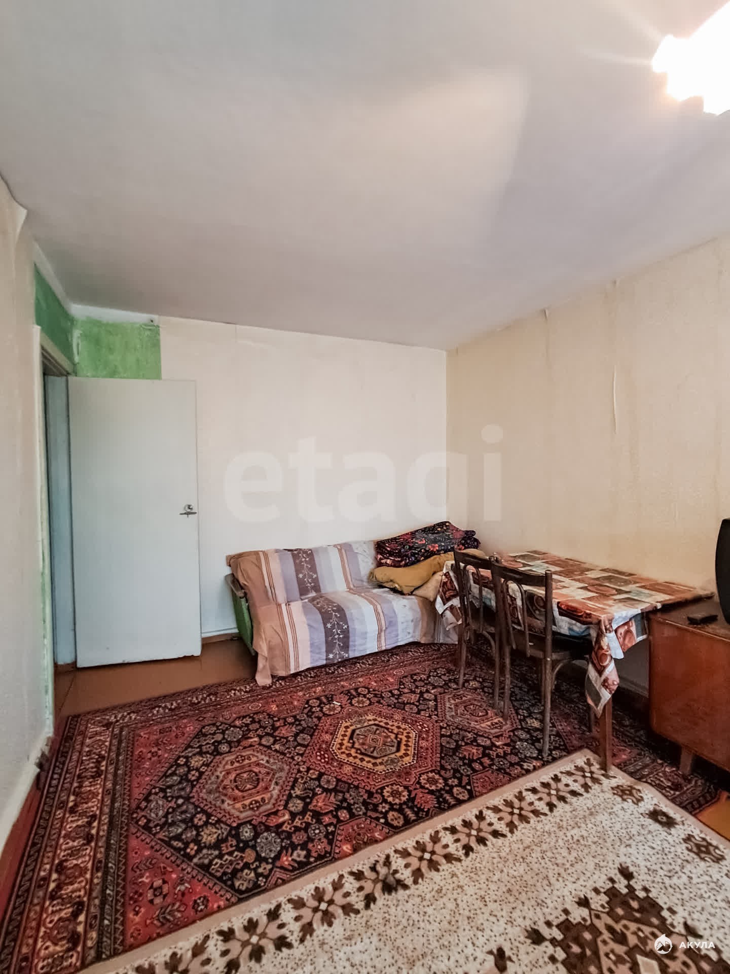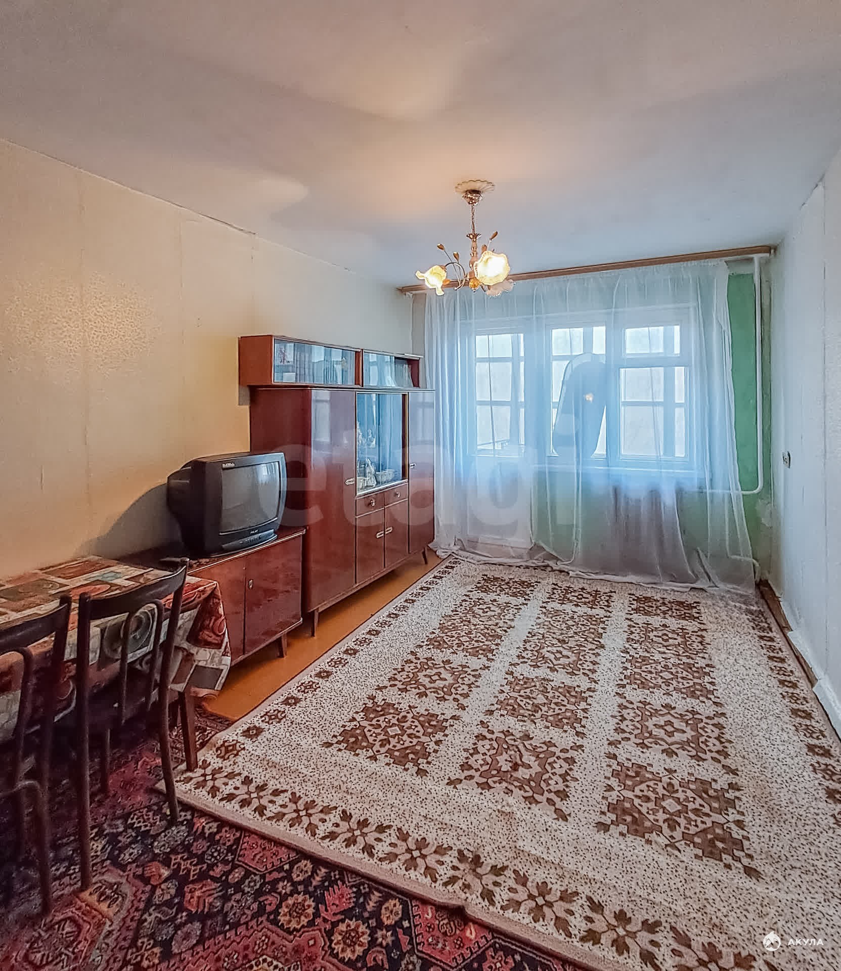 В квартире имеется: кухонный гарнитур, газовая плита, стол обеденный и стулья, холодильник, диван и тд.