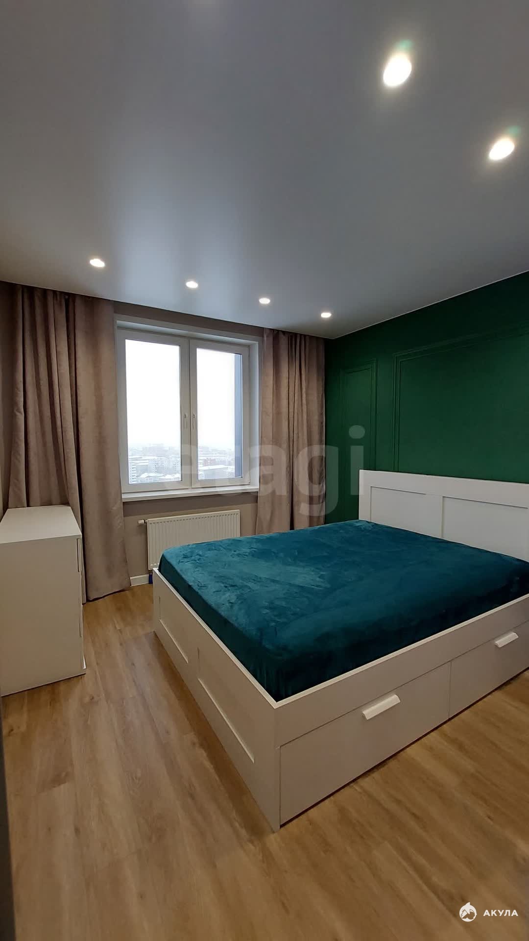 Во второй жилой комнате находится двуспальная кровать и комод. В прихожей зоне стоит большой шкаф. Также есть отдельная гардеробная.