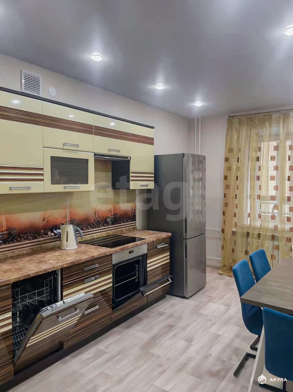 Две раздельные комнаты. Подходит для проживания с детьми, или семьей. Имеется необходимая мебель и техника для комфортного проживания на длительный срок: кухонный гарнитур, холодильник, обеденный стол и стулья, электрическая плита, духовой шкаф, посудомоечная машинка, чайник, фильтровой кувшин для воды, гарнитур под TV, плазменный телевизор, диван, журнальный столик, W-F роутер, 2 тумбы, двухспальная кровать, вместительный шкаф с зеркалом, пылесос, сушилка, шкаф 2 с ящиками и крючками для одежды, ванна, унитаз, ящики в ванной.