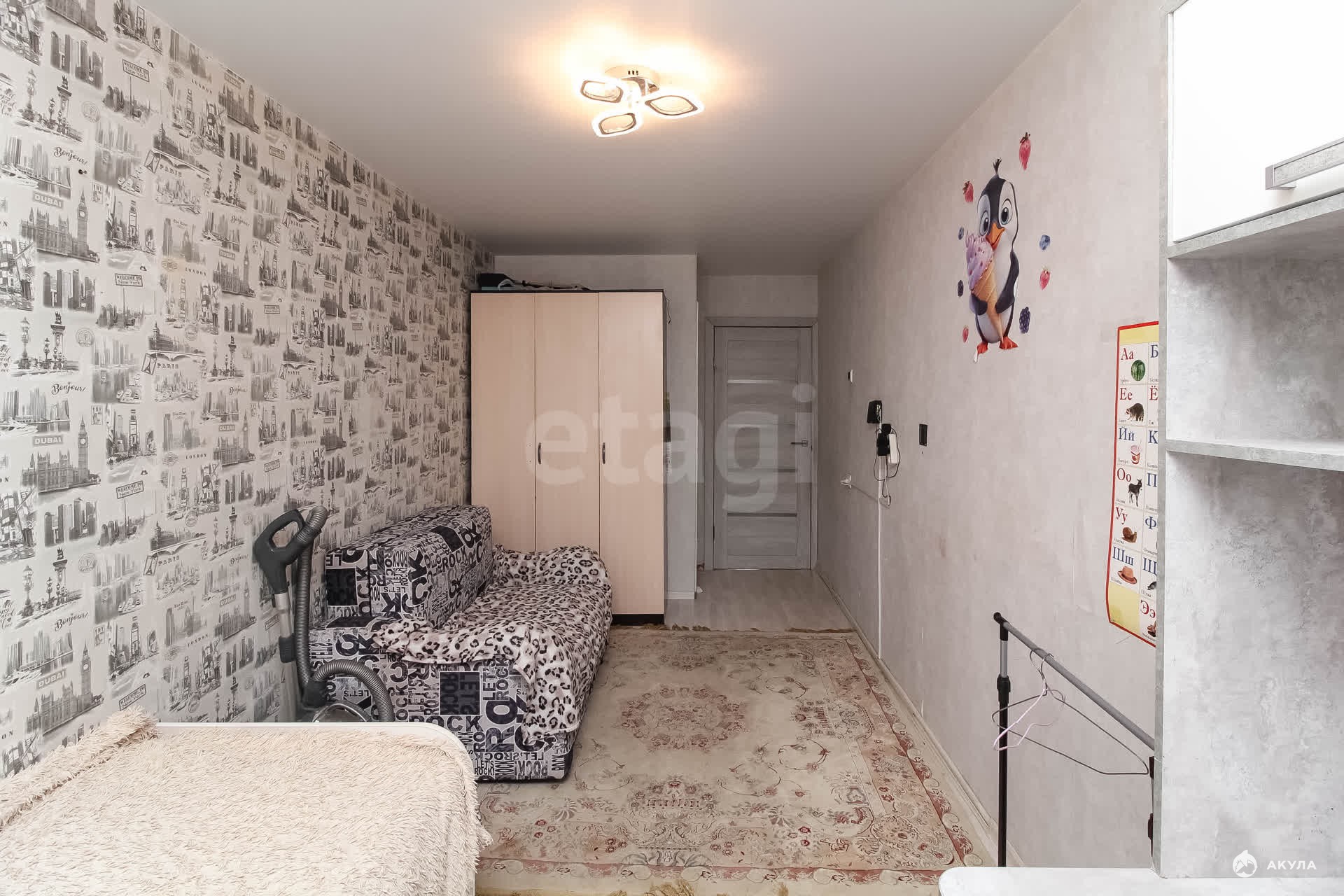 В квартире есть всё необходимое для комфортного проживания: Обеденная группа, диван, кровать, шкаф, холодильник, стиральная машина.