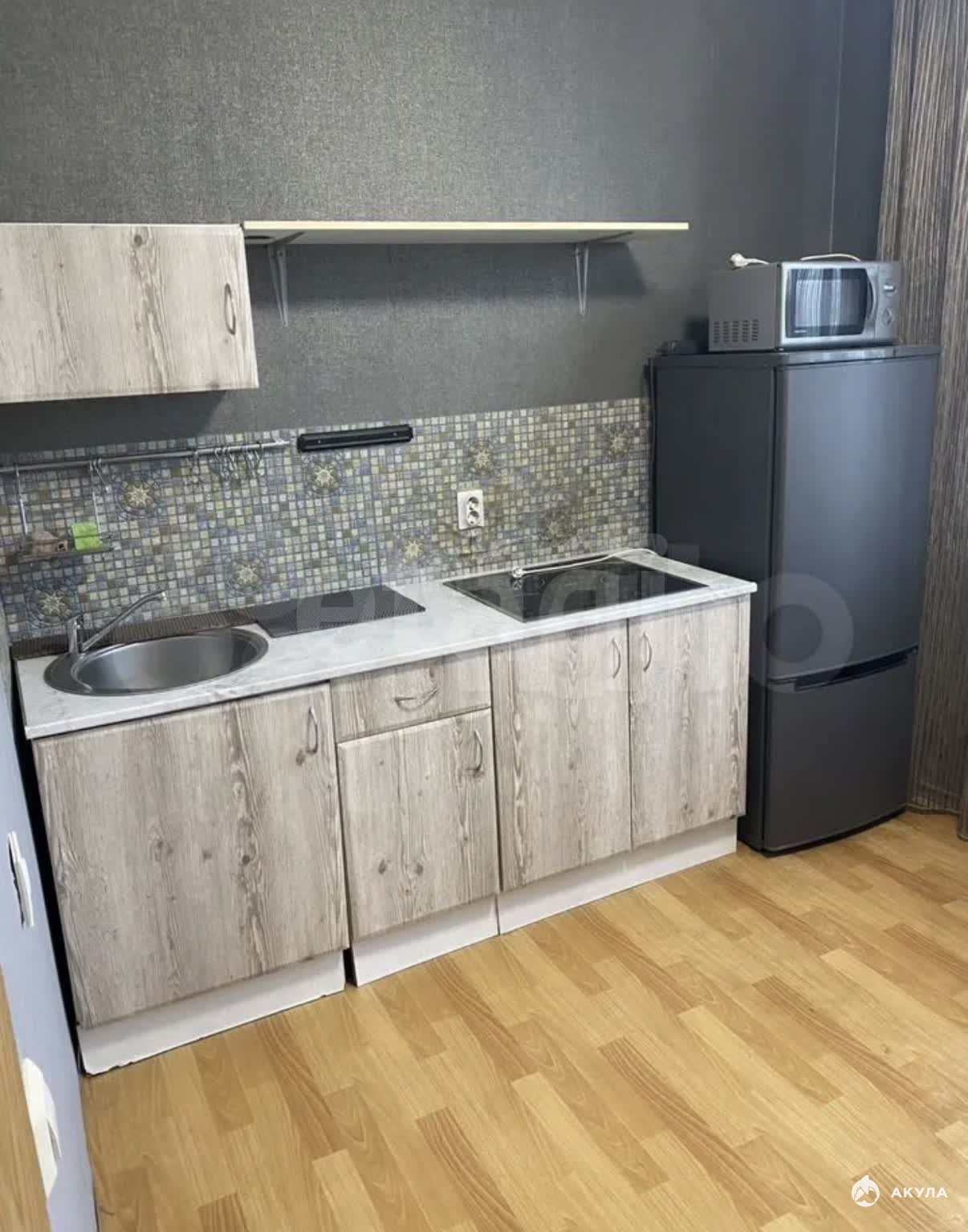 В квартире имеется вся необходимая техника и мебель:кухонный гарнитур, стулья, электрическая плита, холодильник, микроволновка, кровать, шкаф, диван, телевизор, тумбочки, стиральная машинка.