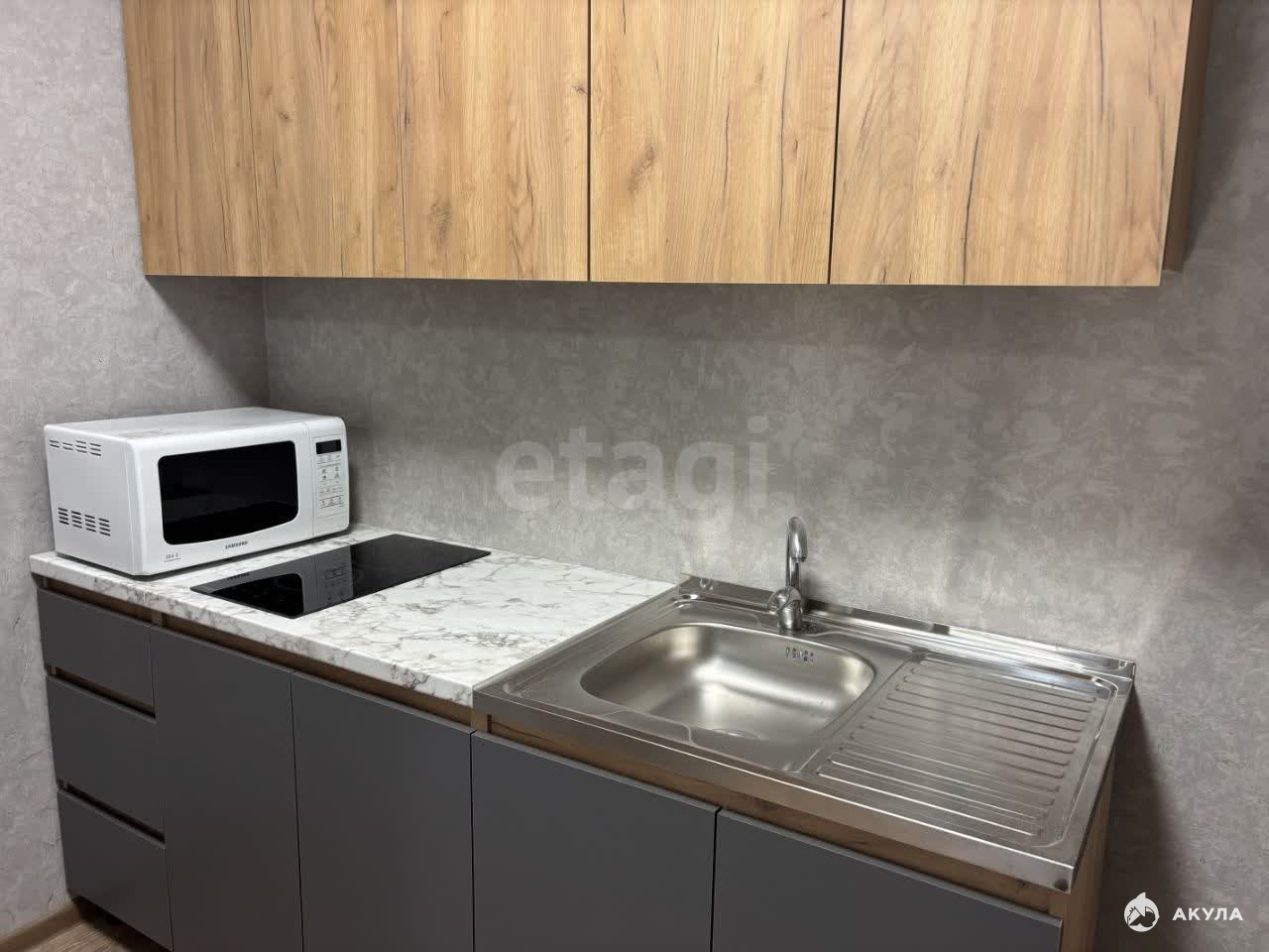 Имеется все необходимое для комфортного проживания: кух. гарнитур, варочная панель, холодильник, микроволновая печь, обеденная группа, шкаф, диван, стиральная машина.