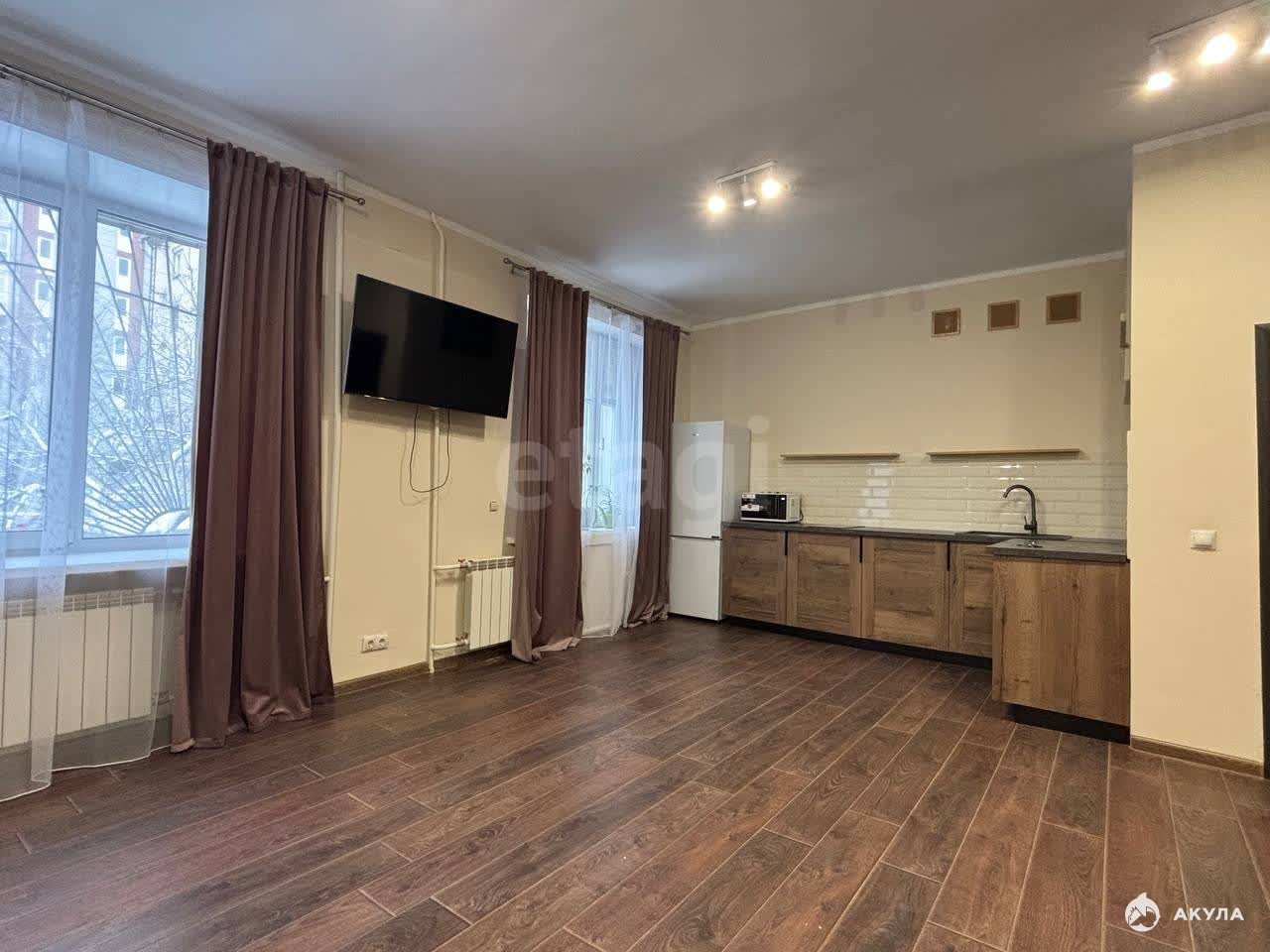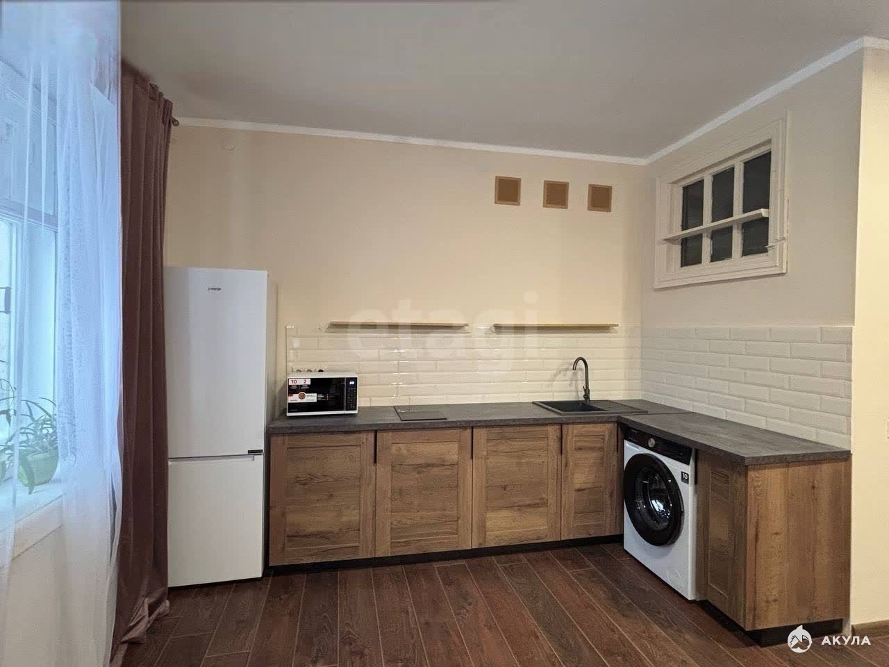 В квартире есть все необходимое для комфортного проживания: на кухне и в комнате установлена мебель, имеется холодильник, телевизор и стиральная машина. Совмещенный санузел оборудован душевой кабиной. Окна выходят как на улицу, так и во двор, поэтому в квартире всегда много света и свежего воздуха. Подключен интернет.