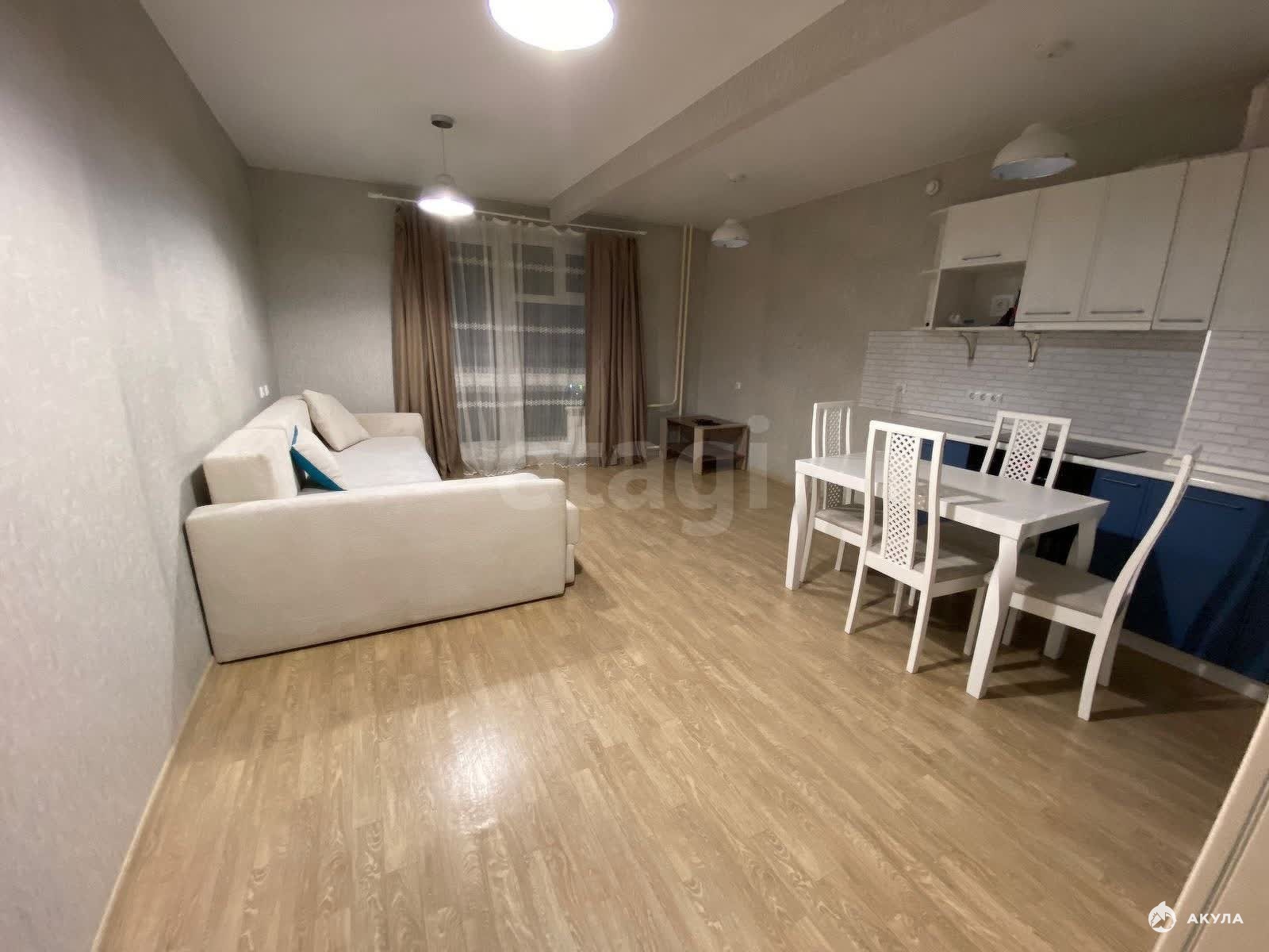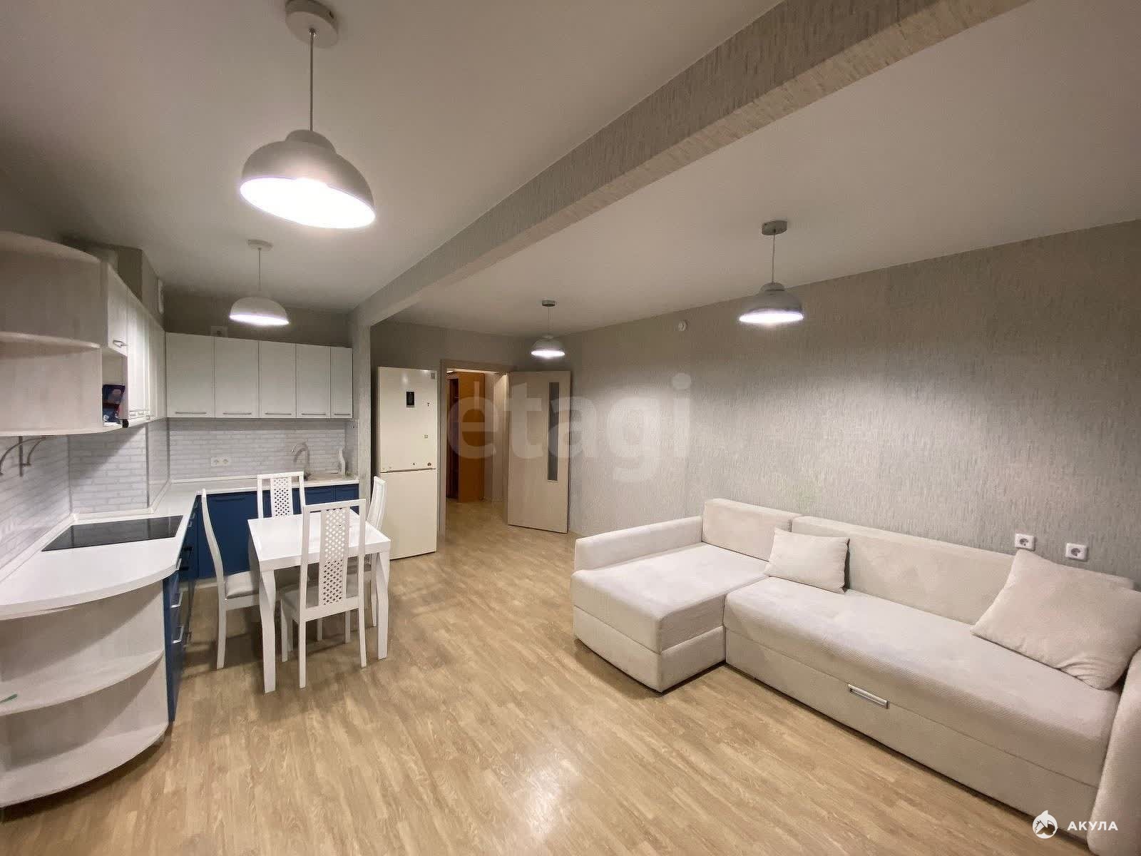 Имеется все необходимое для комфортного проживания: кух. гарнитур, электрическая плита с духовым шкафом, микроволновая печь, электрический чайник, холодильник, обеденная группа, шкаф, диван, двуспальная кровать, стиральная машина, телевизор.