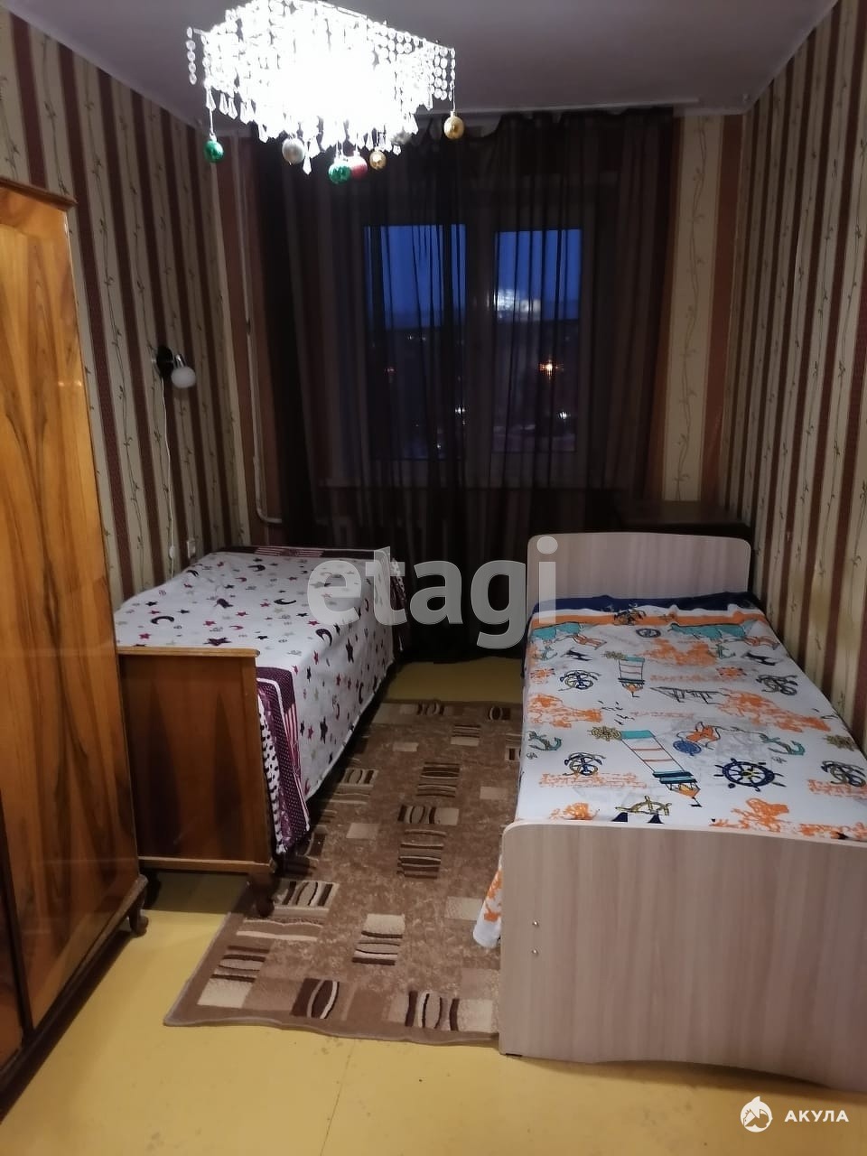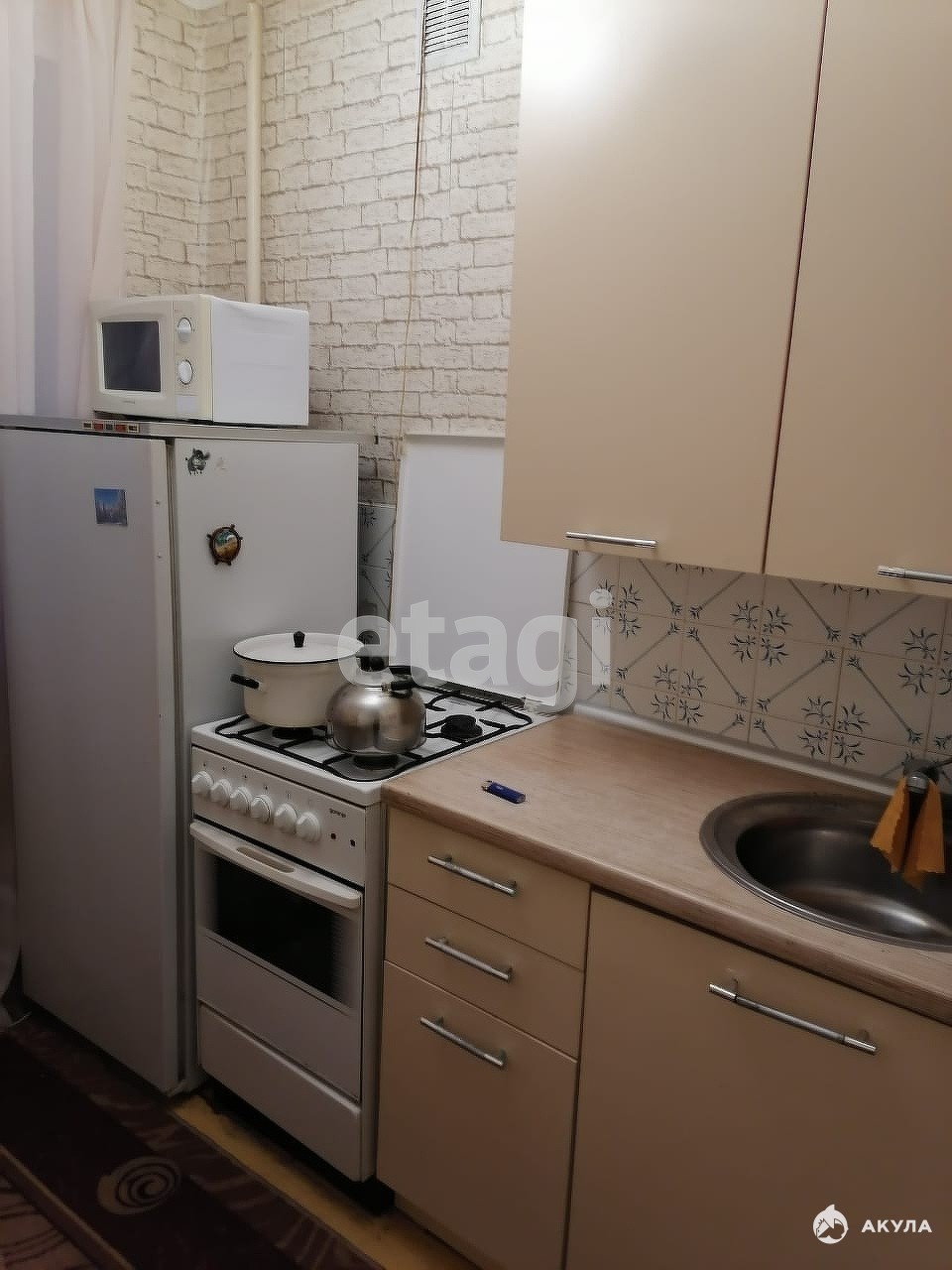 Имеется все необходимое для комфортного проживания: кух. гарнитур, газовая плита, холодильник, микроволновая печь, обеденная группа, шкаф, диван, две односпальные кровати, стиральная машина.