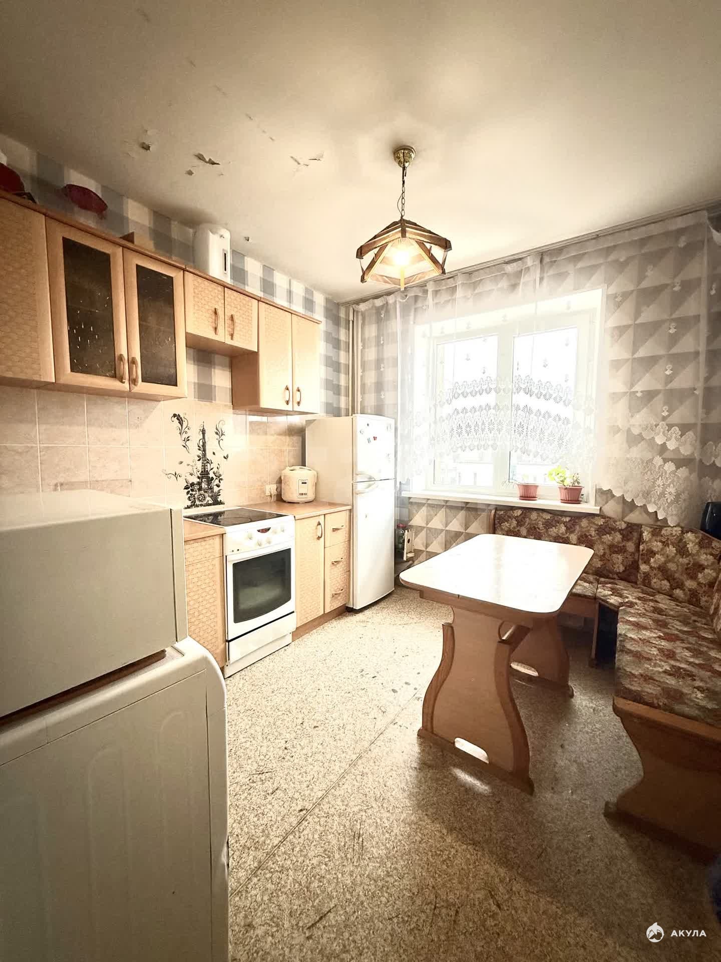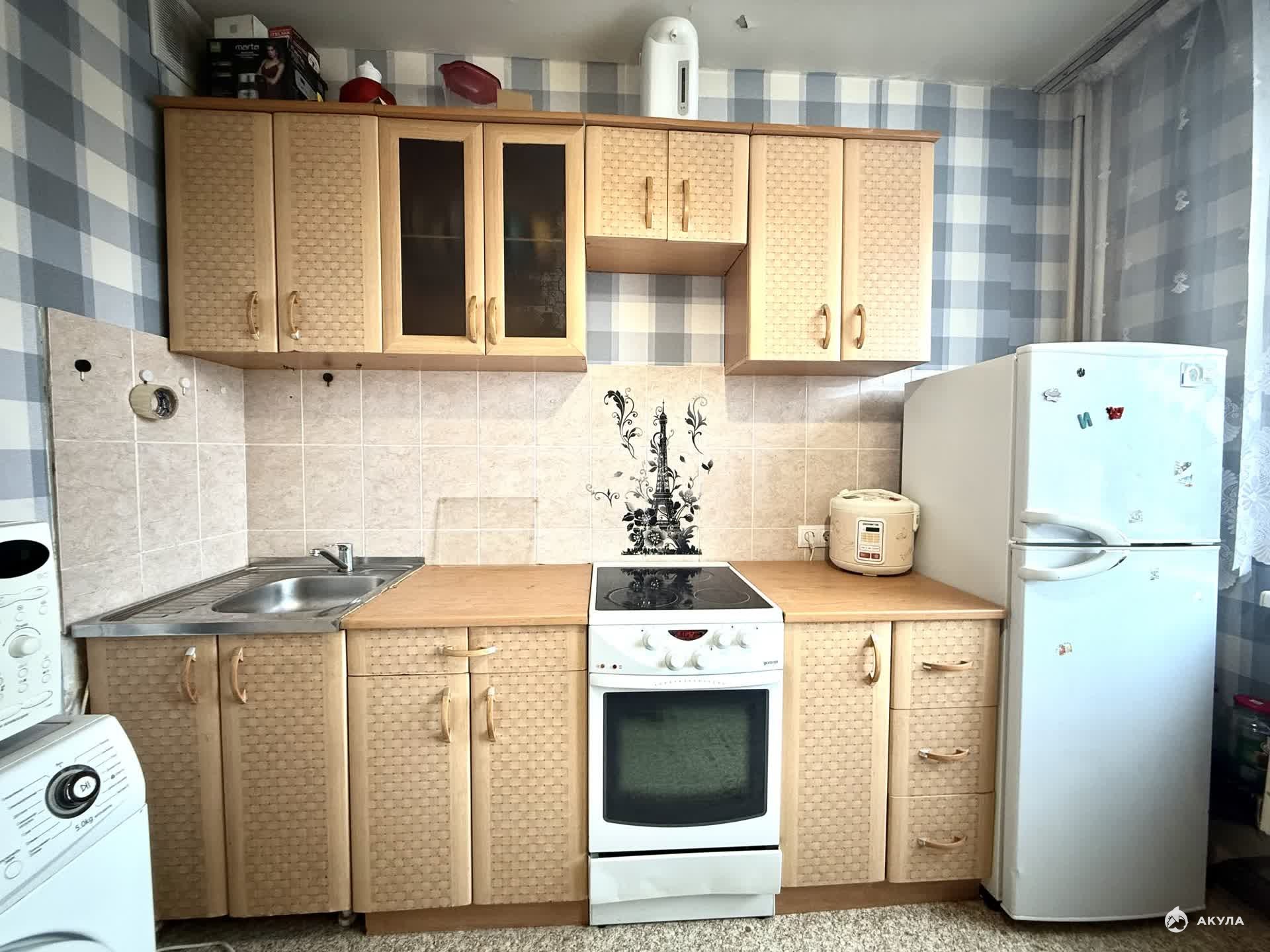 В квартире имеется вся необходимая техника и мебель:кухонный гарнитур, кухонный стол, угловое, стулья, электрическая плита с духовым шкафом, микроволновая печь, чайник, диван, кровать, телевизор, комод с зеркалом,